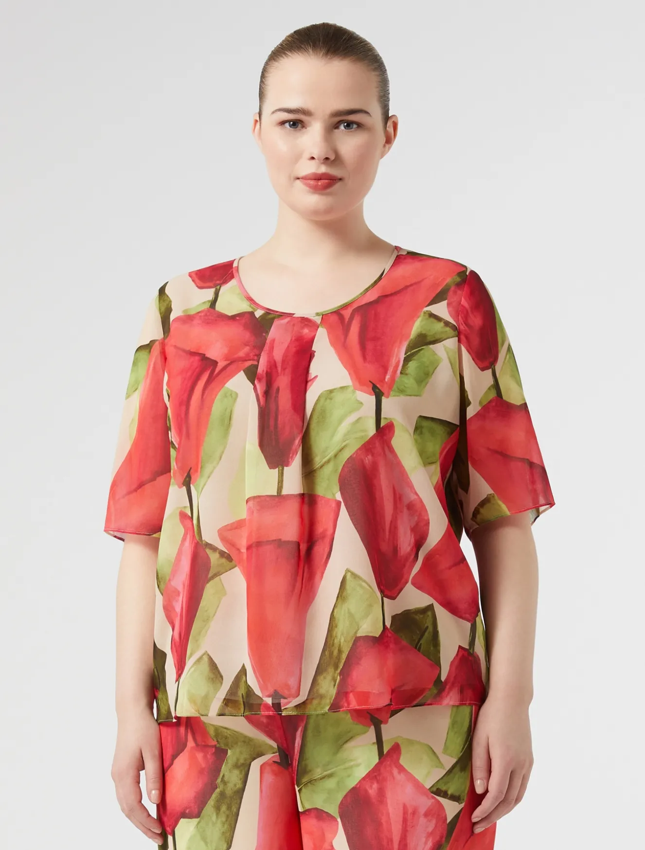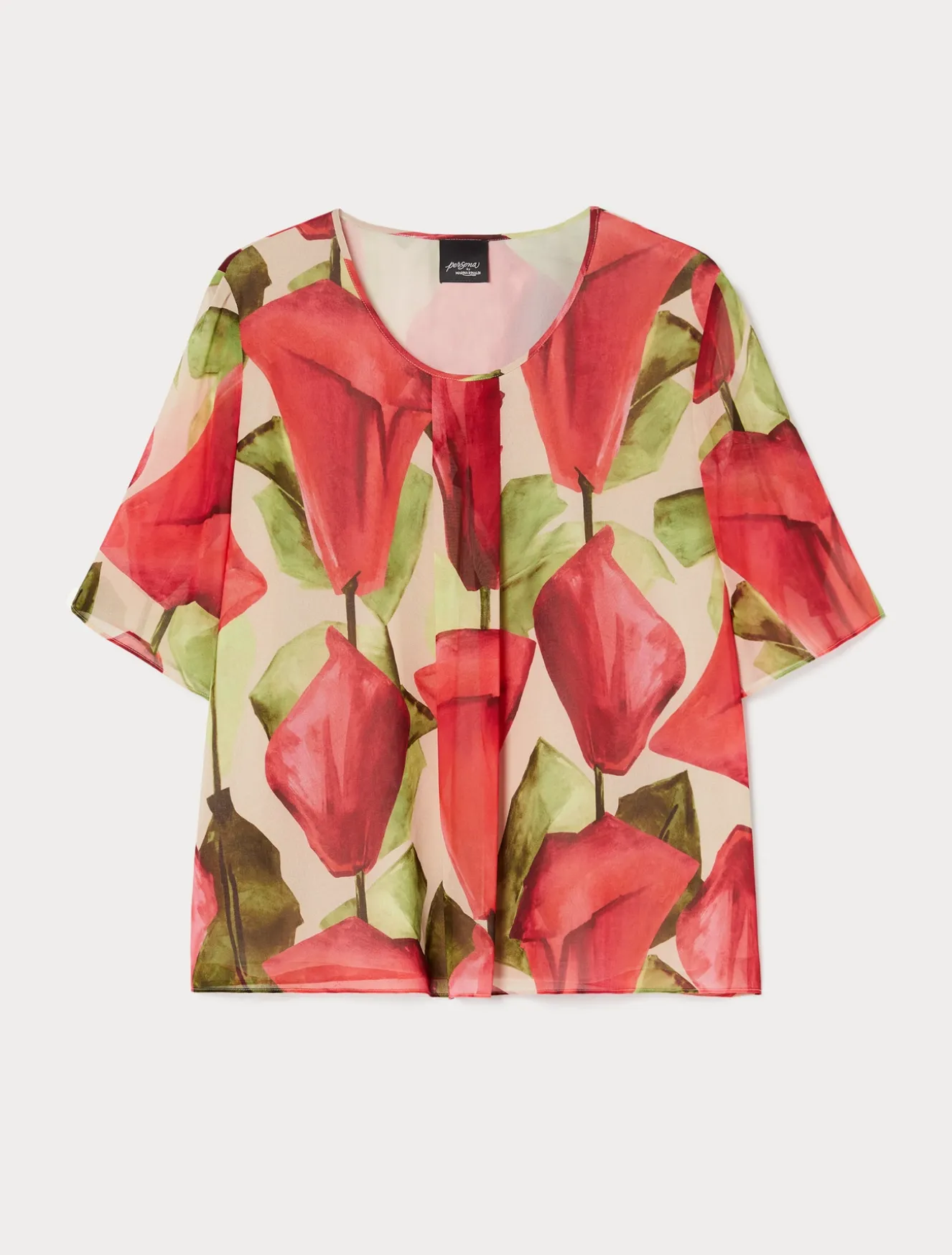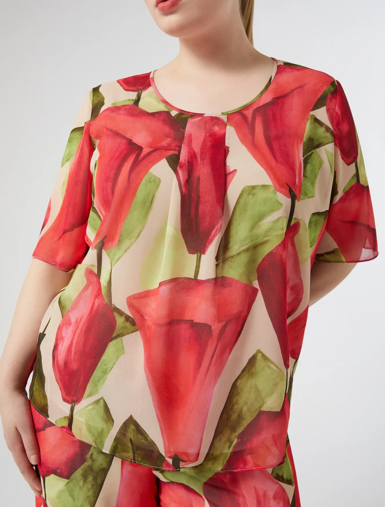 Gerade geschnittenes Top aus Georgette mit exklusivem Musterprint. Verleiht jederlei Look einen edlen und grafischen Touch.