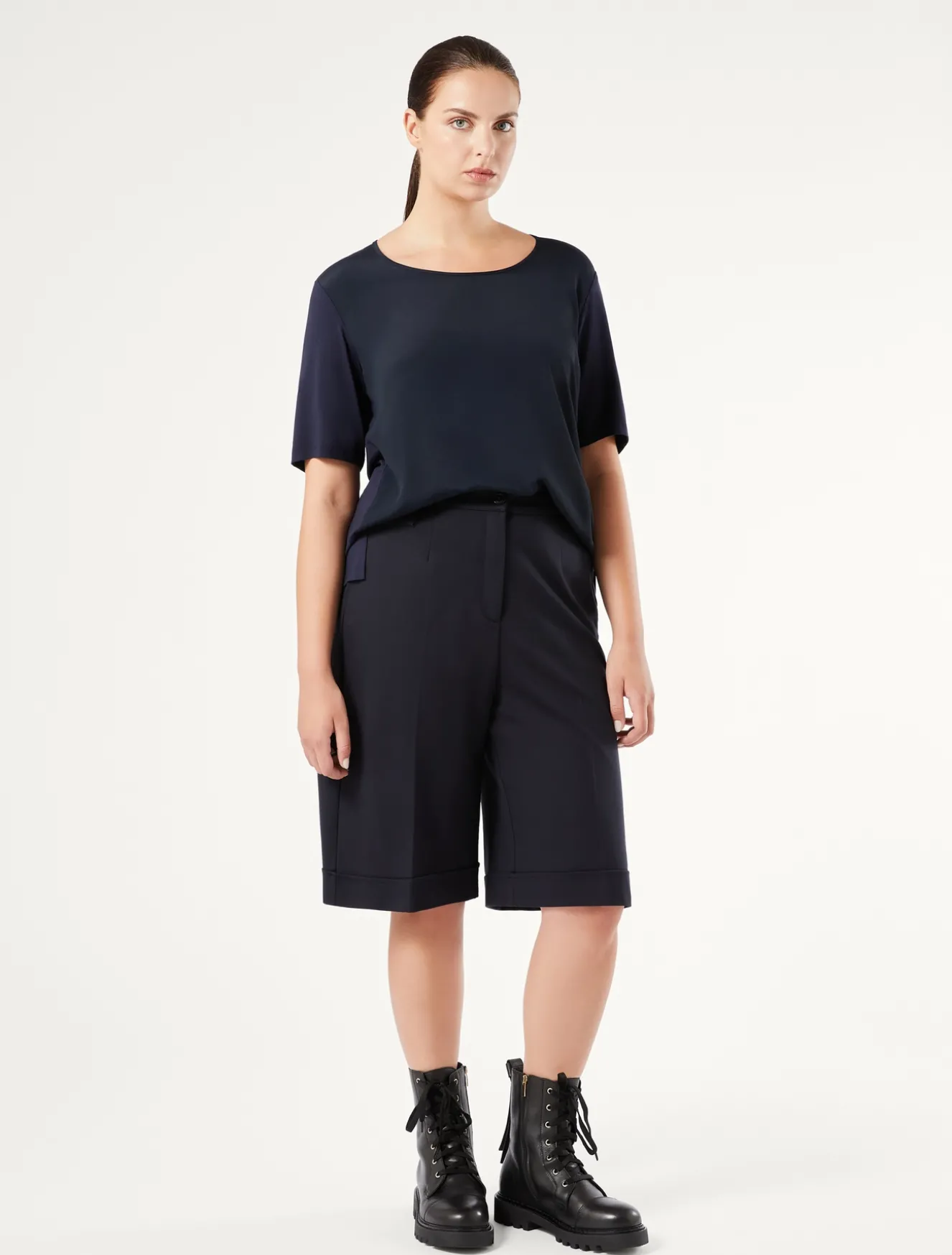 Stilvolle und schlichte Bermuda-Shorts aus Punto Milano Jersey und Bügelfalte in der Mitte. Trage sie für einer Vielzahl von Looks.Das Kleidungsstück ist Teil der Kollektion Persona by Marina Rinaldi.