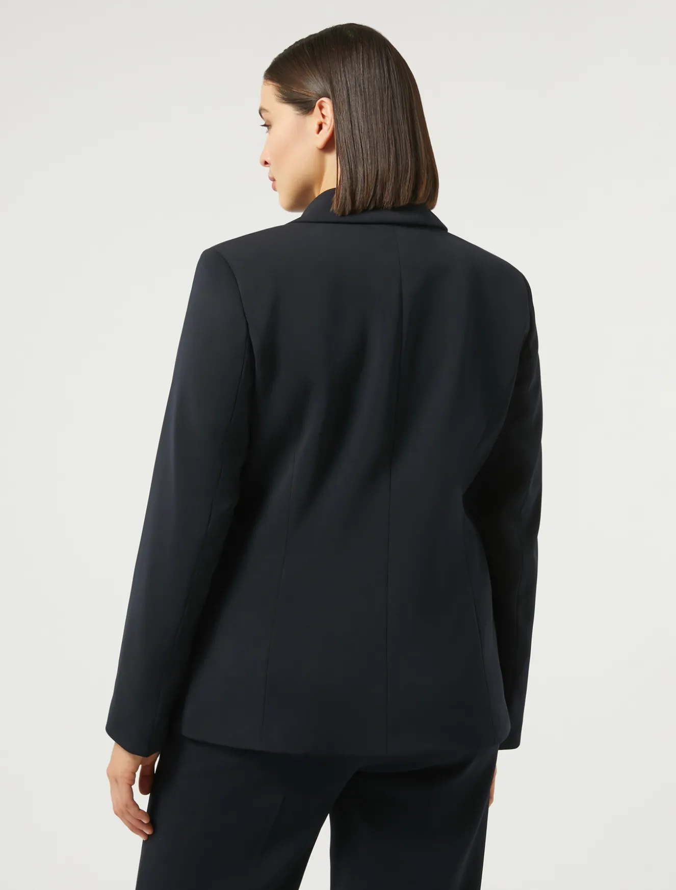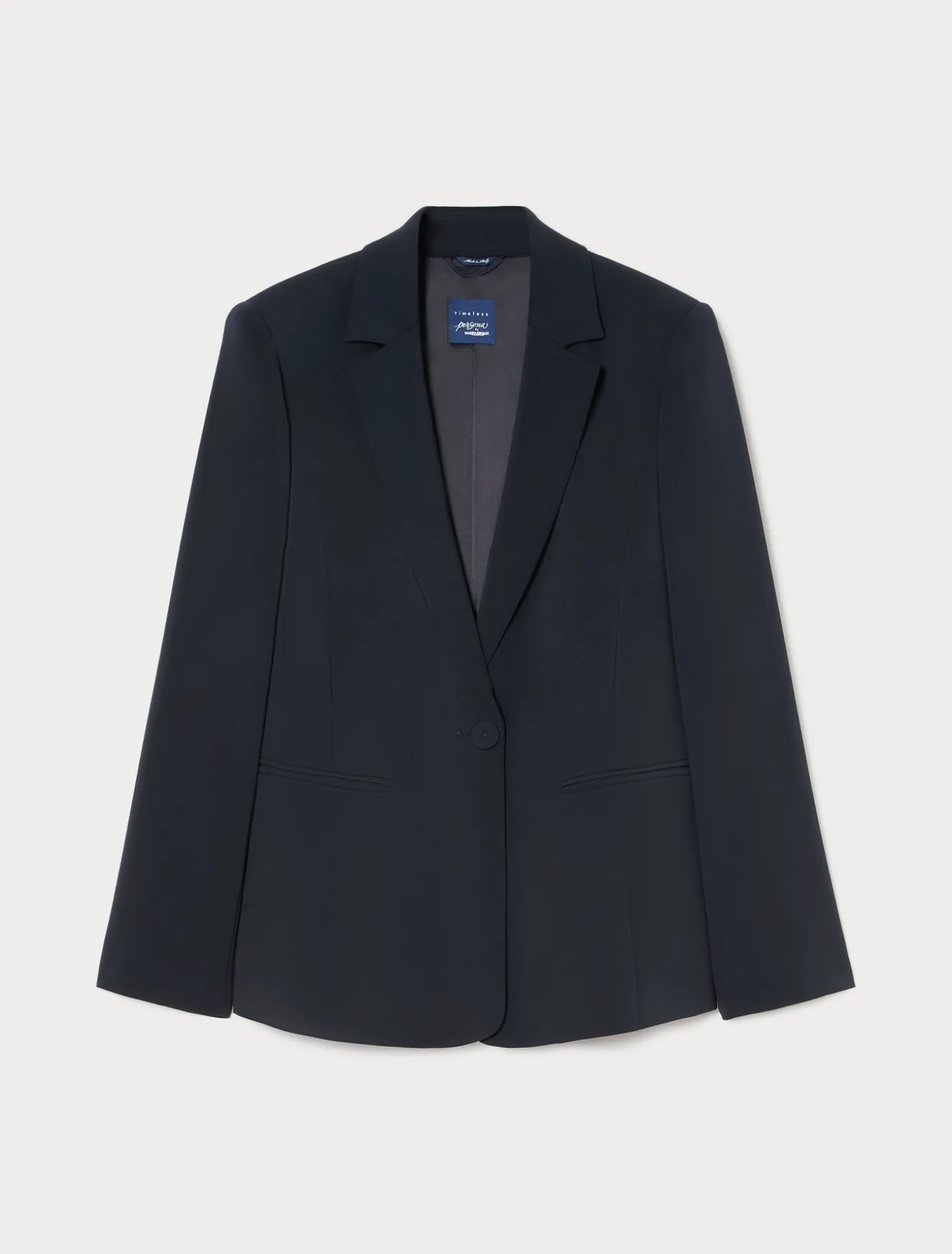 Maßgeschneidert und vielseitig ist der Blazer aus Stretch-Cady mit stoffbezogenem Knopf. Ideal für das Büro oder die Freizeit.