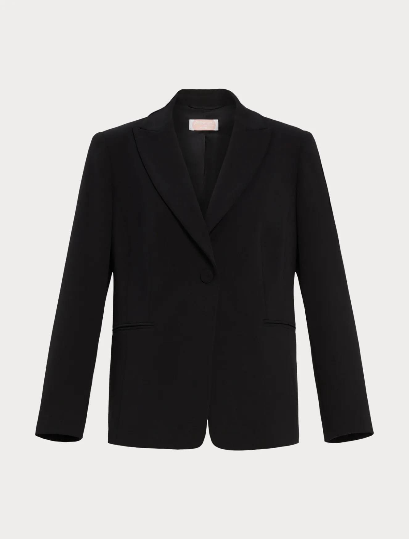 Eine feminine Linienführung zeichnet diesen Blazer aus Jersey mit Stretchanteil und Pfeilrevers, langen Ärmeln und Paspeltaschen aus. Der einreihige Verschluss sorgt für eine markante Note.Das Kleidungsstück ist Teil der N.O.W.