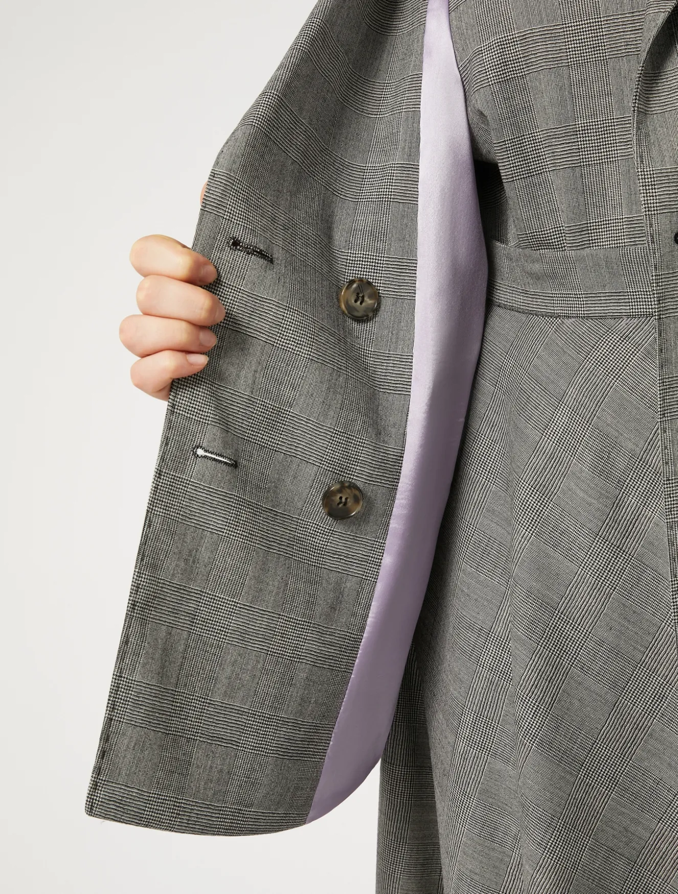 Blazerjacke mit Glencheck-Karo aus Einwege-Stretch-Woll-Foulé-Canvas mit handgefertigten Ziernähten und angenehm weichem Griff. Ideal geeignet in Kombination mit den dazu passenden Hosen.Dieses Modell gehört zur Hauptkollektion von Marina Rinaldi.