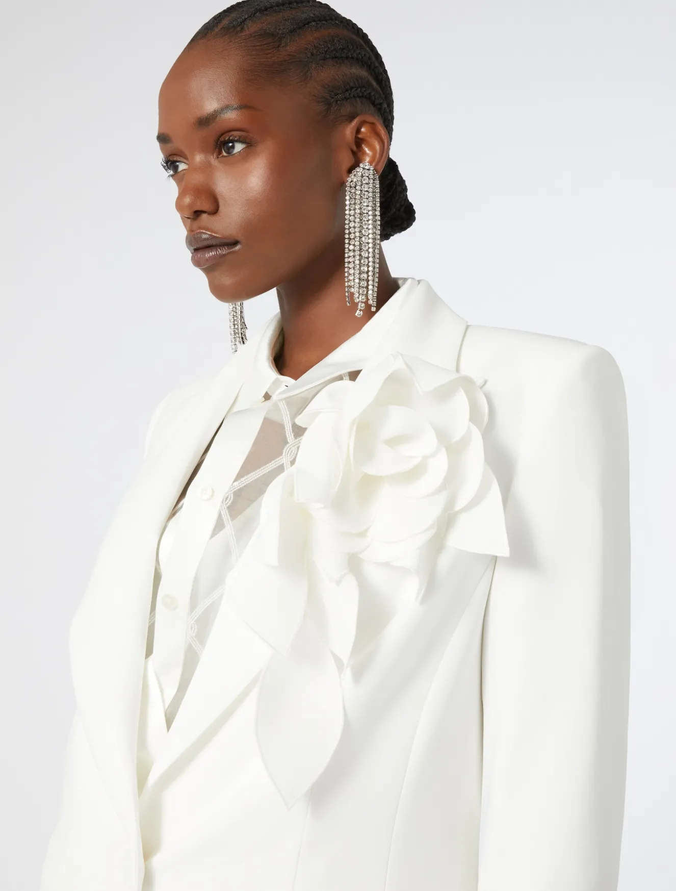 Blumenbrosche aus Triacetat, die ins Auge sticht. Verleihen Sie dem Style einen romantischen, floralen Touch.