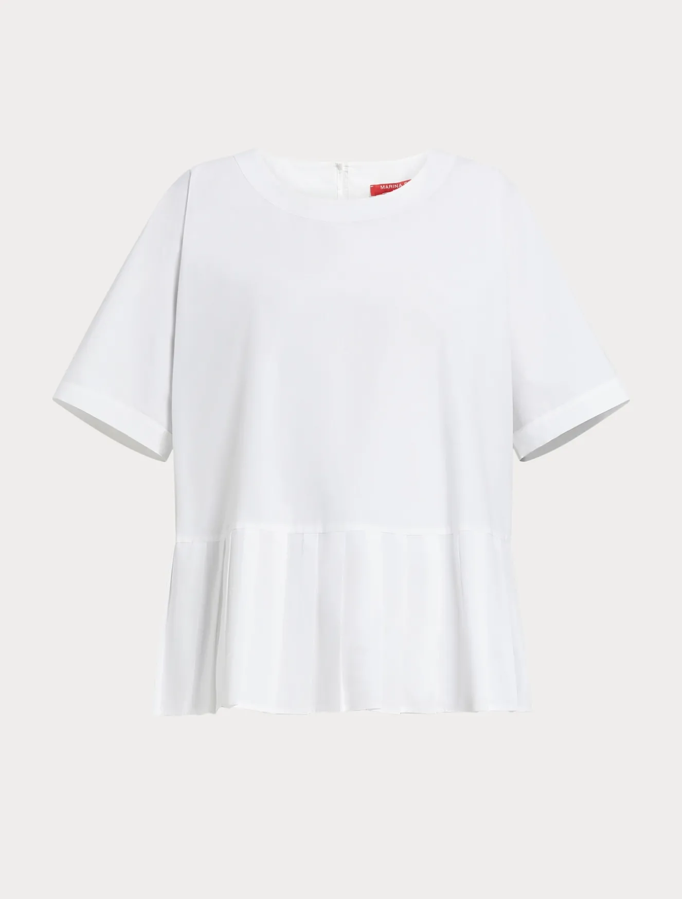 Diese Bluse aus Baumwollpopeline im Boxy Fit erhält durch den plissierten Volant am unteren Saum eine feminine und außergewöhnliche Note. Einfach mit allen Teilen der Garderobe kombinierbar.Das Kleidungsstück ist Teil der Kollektion Marina Sport.