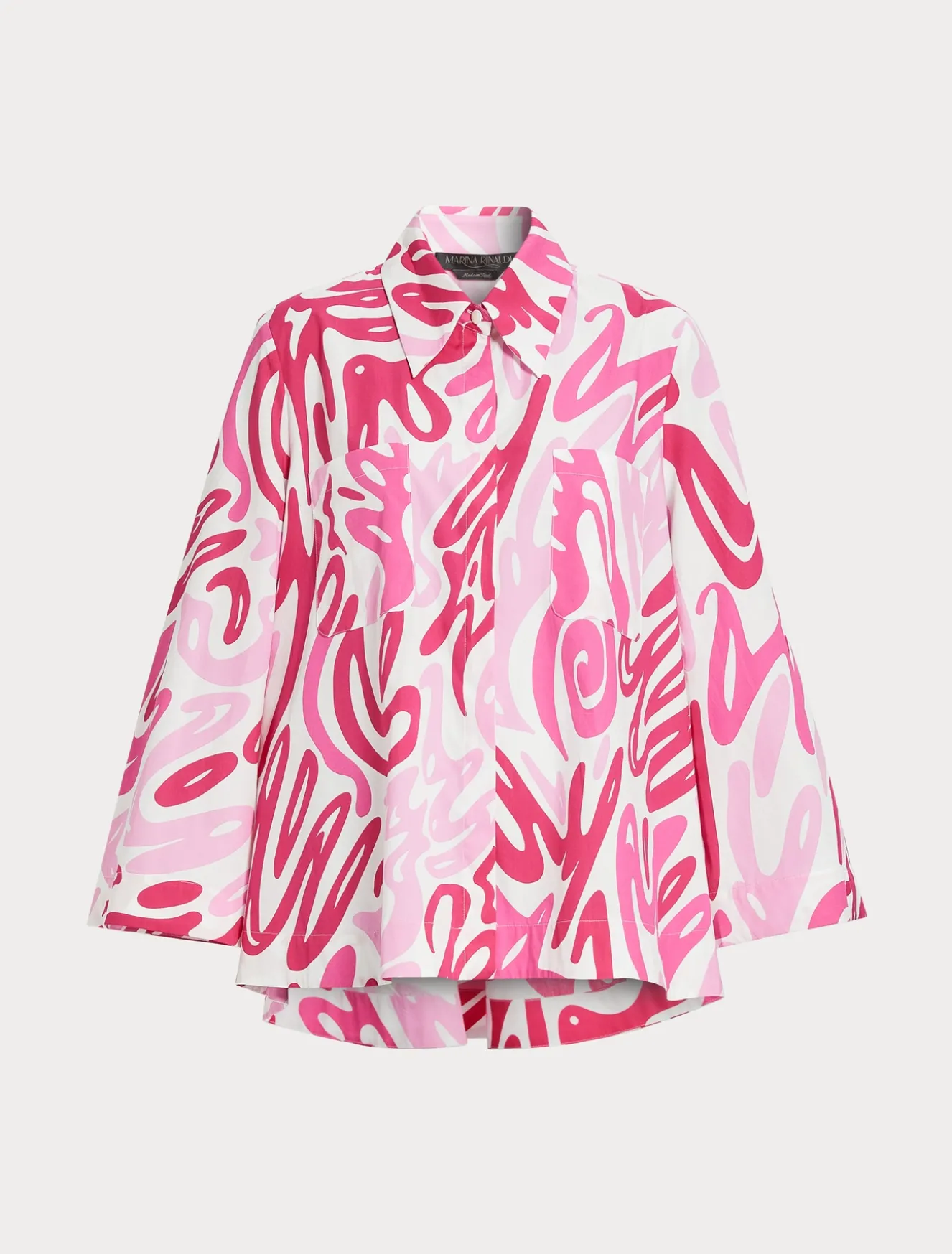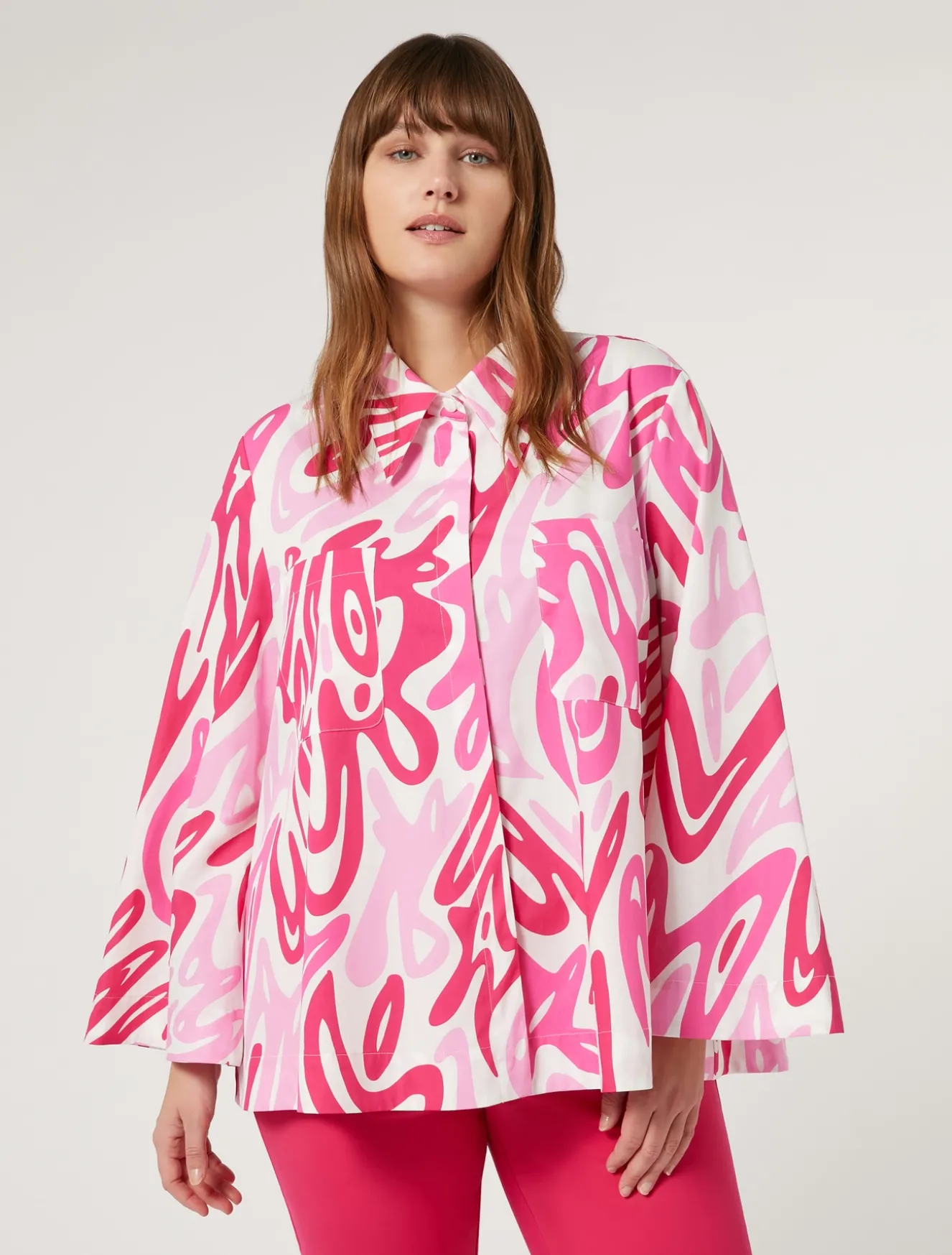 Bluse aus Baumwollpopeline mit asymmetrischem Saum und charakteristischem Musterprint. Sie verleiht deinen Outfits sofort eine grafische Note.Das Kleidungsstück ist Teil der Sonderkollektion von Sara Battaglia für Marina Rinaldi.