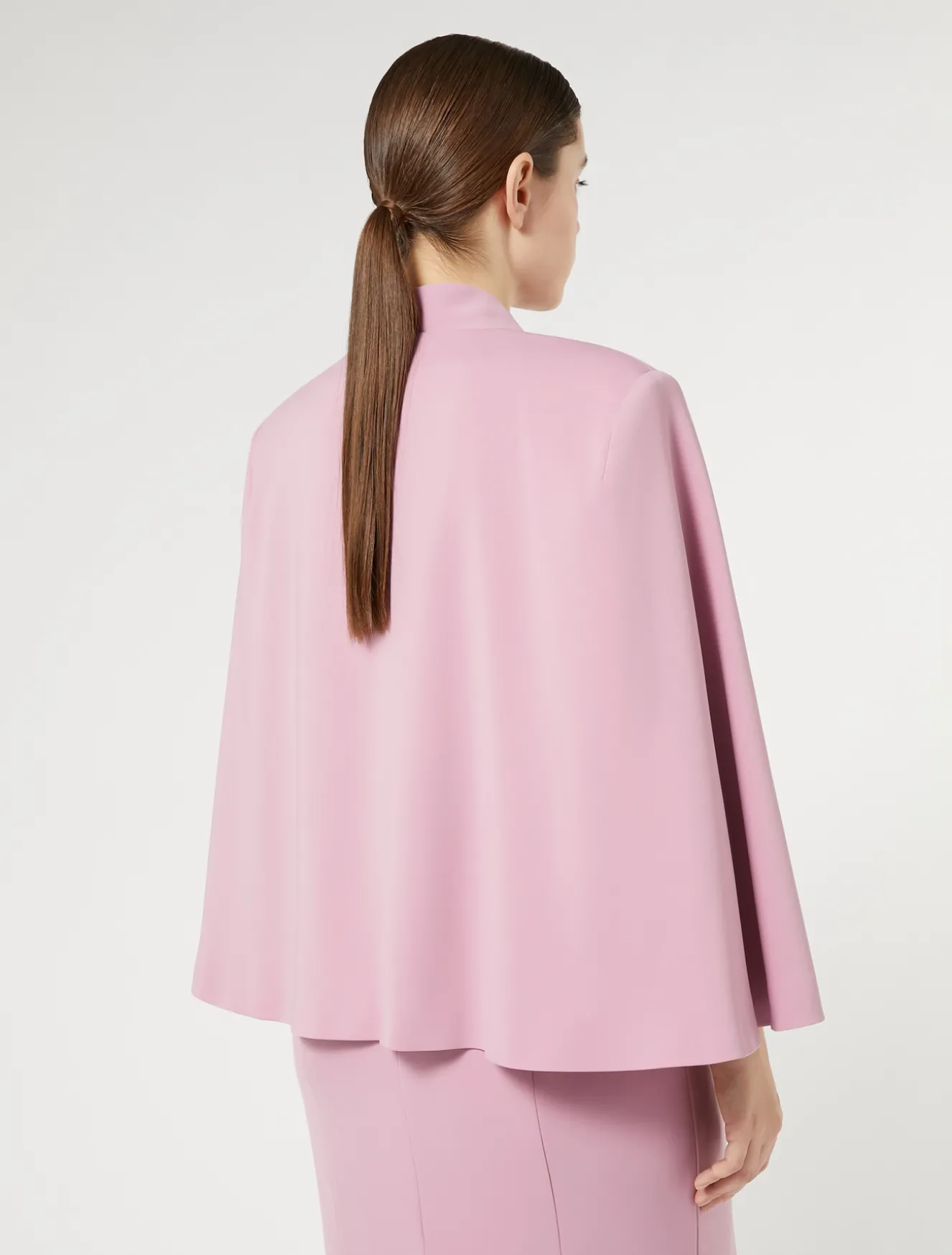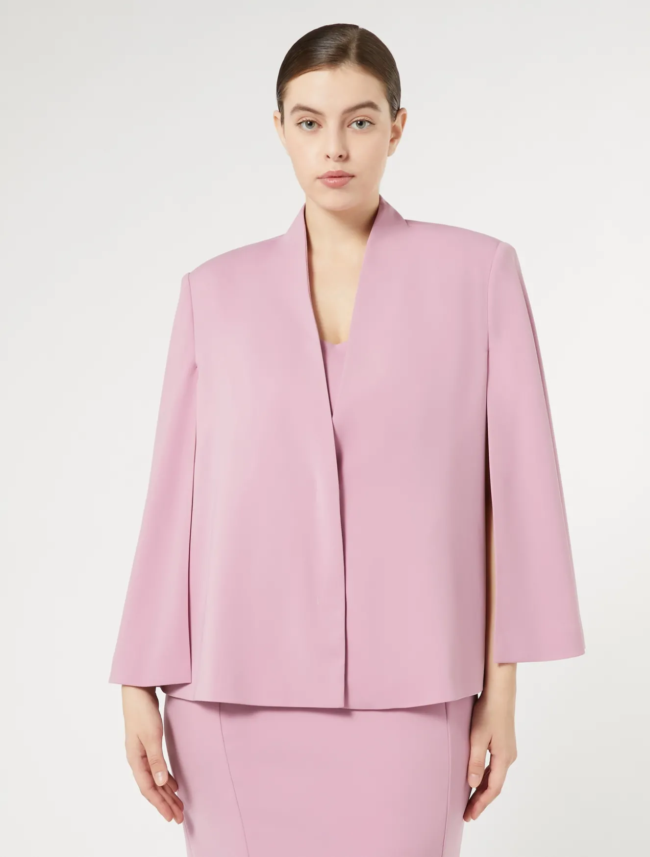 Die Cape-Jacke aus Cady mit V-Ausschnitt und Schlitzen vorne umhüllt die Silhouette in klarer Linienführung und fließender Passform. Der Druckknopfverschluss ermöglicht einen sofortigen Sitz.Das Kleidungsstück ist Teil der Kollektion Persona by Marina Rinaldi.