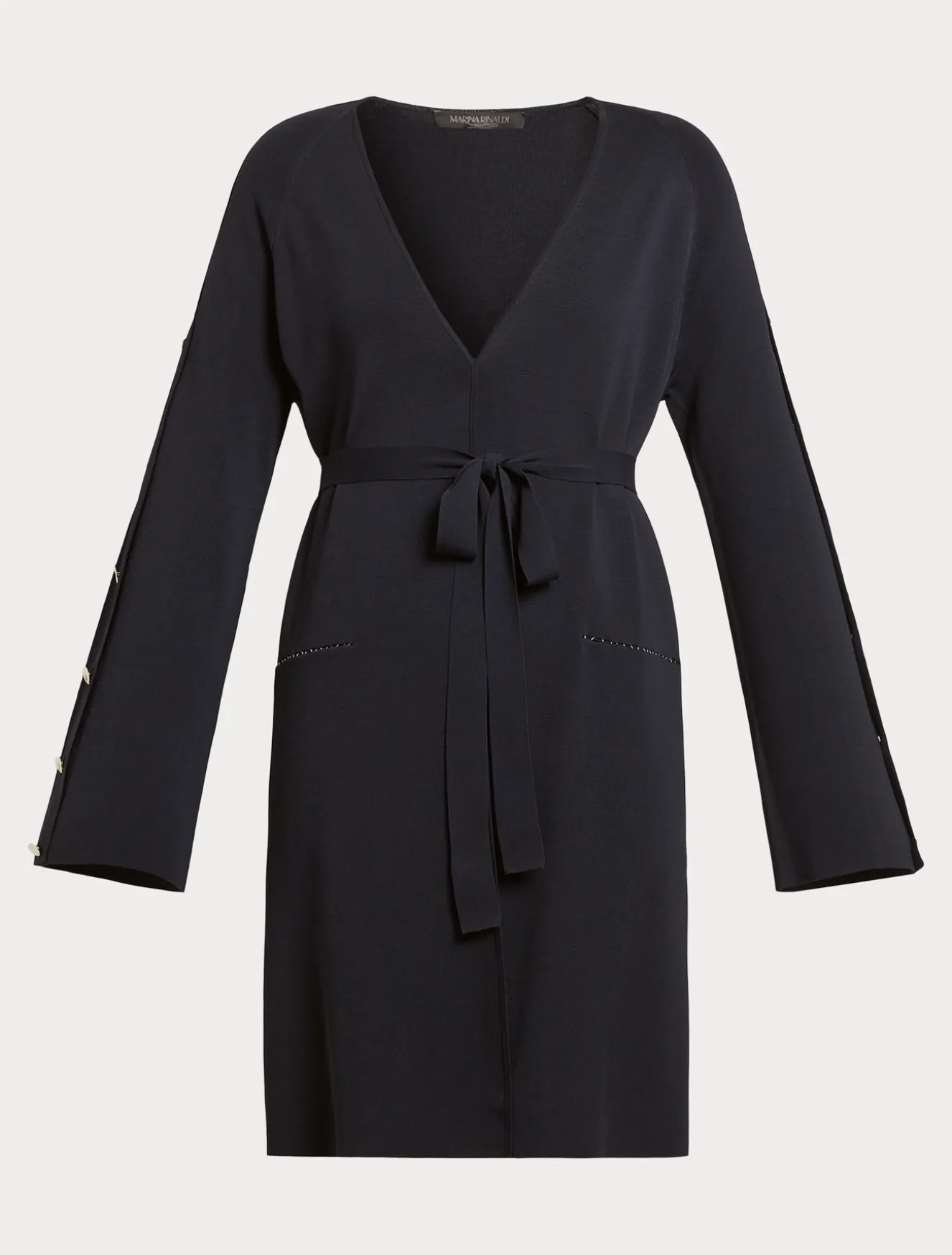 Raffinierter Cardigan aus blickdichtem Comfort-Viskosestoff mit tiefen Ärmelausschnitten und Schmuckknöpfen. Lässt sich wunderbar mit dem mitgelieferten Gürtel tragen. Lässt sich wunderbar mit der dazu passenden Hose kombinieren.Dieses Modell gehört zur Hauptkollektion von Marina Rinaldi.