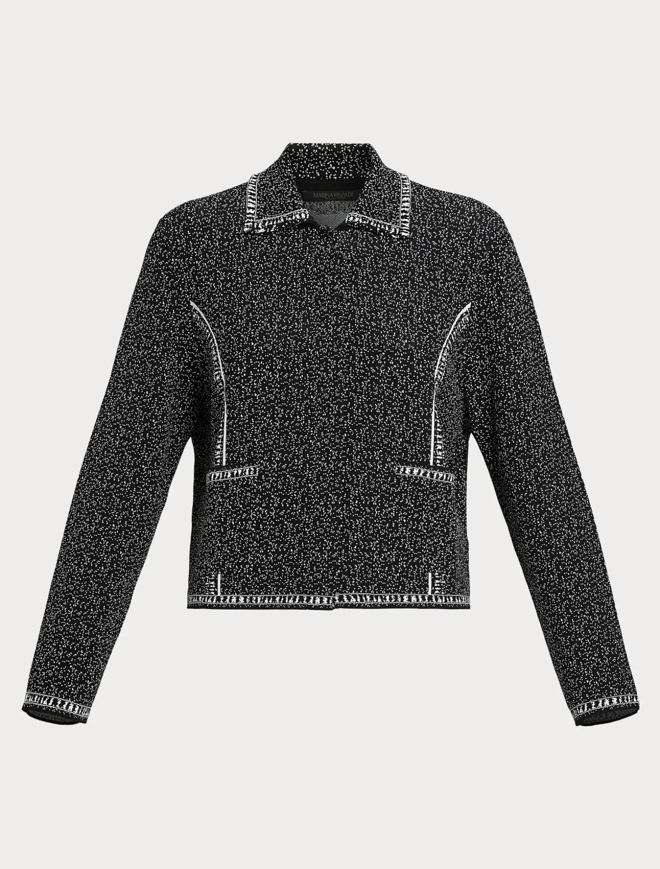 Cardigan aus blickdichtem Comfort Viskose-Jacquard mit von Hand aufgenähten und Doppelsteppstich-Motiv. Trage dazu die passende Hose.Dieses Modell gehört zur Hauptkollektion von Marina Rinaldi.