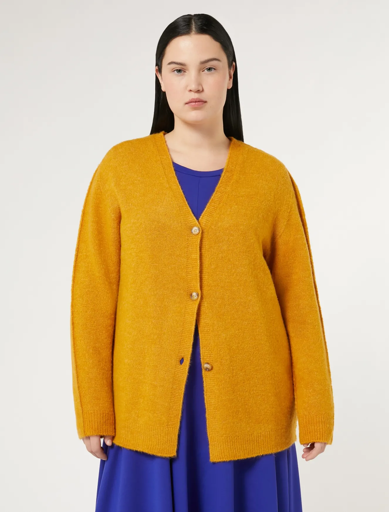 Cardigan aus weicher Wolle mit Farbspiel, V-Ausschnitt, langen tief angesetzten Ärmeln und Knopfverschluss. Zu tragen um deinen Alltagslook zu beleben.Das Kleidungsstück ist Teil der Kollektion Persona by Marina Rinaldi.