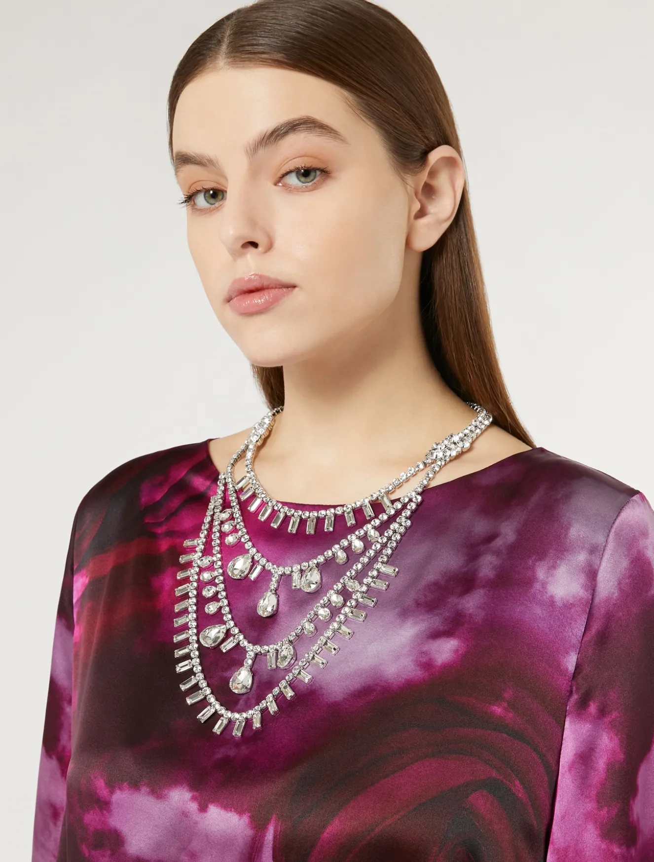 Die mehrreihige edle und eindrucksvolle Choker-Halskette besteht aus Cabochons verschiedener Formen und Größen. Um den Stil von besonderen Outfits zum Strahlen zu bringen.Das Kleidungsstück ist Teil der Kollektion Elegante.