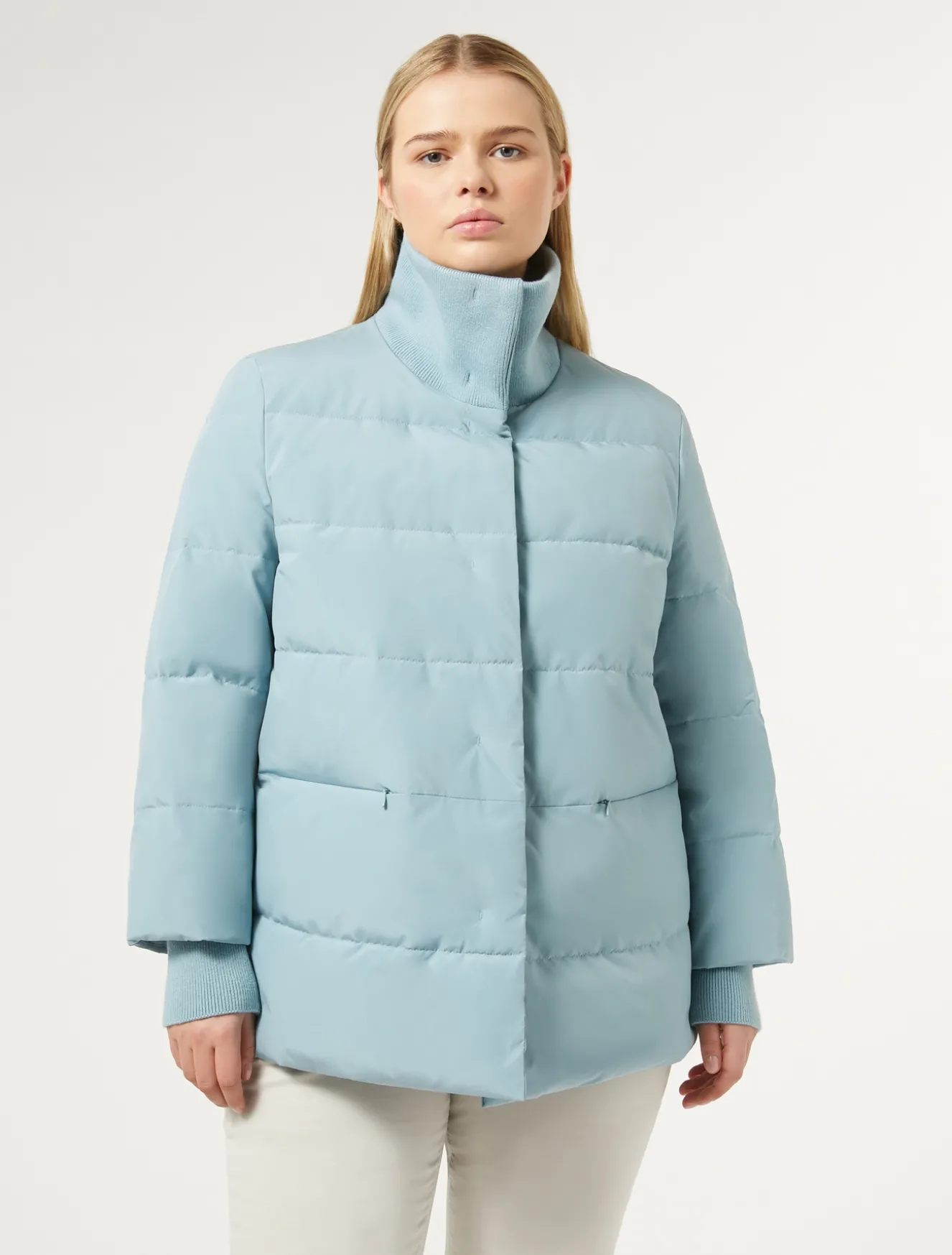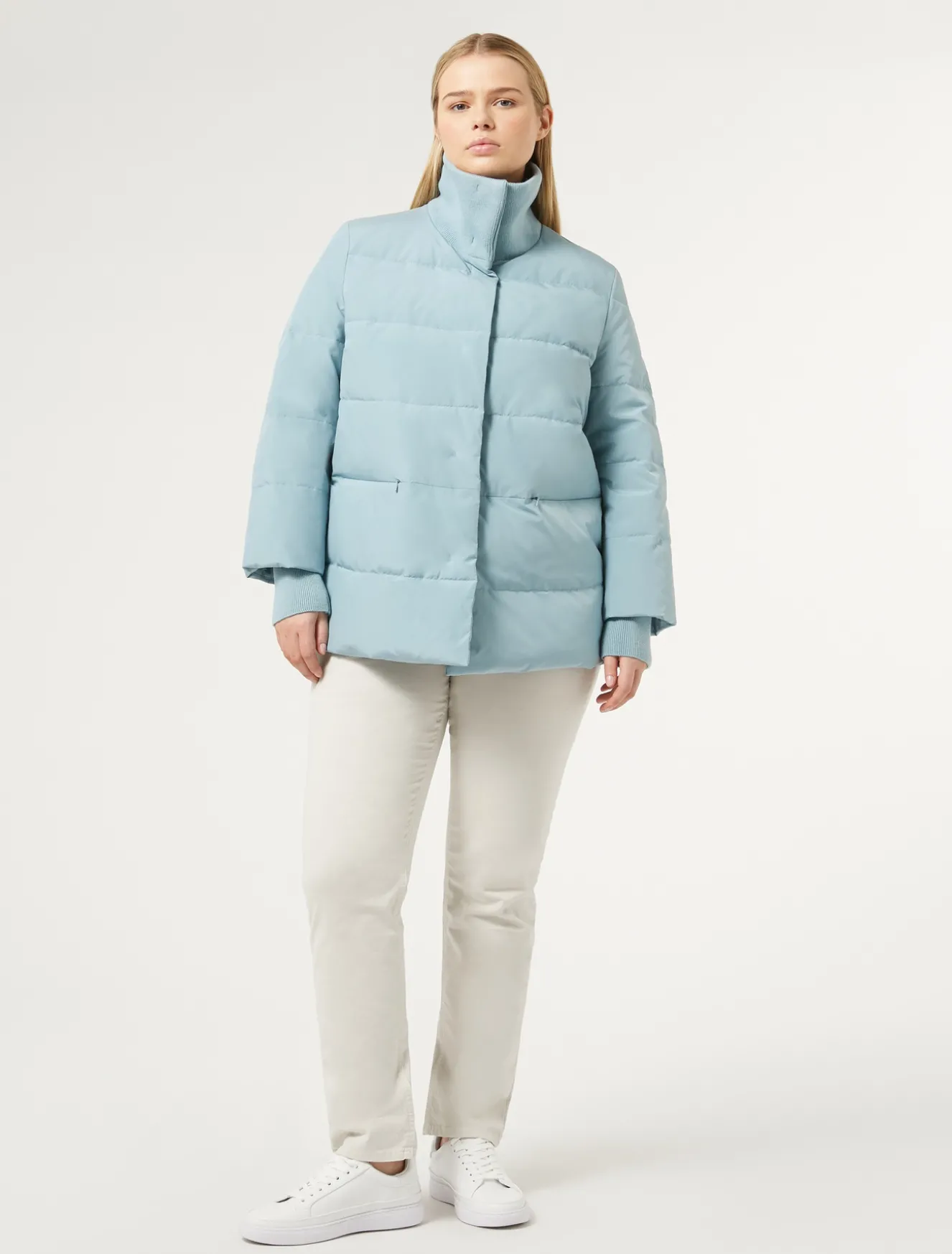 Wattierte Jacke aus Funktionsgewebe mit horizontaler Steppung und Stehkragen sowie langen Ärmel mit Strickbündchen, die immerzu warm hält. Das Kleidungsstück ist Teil der Kollektion Persona by Marina Rinaldi.– Funktionsgewebe– A-Linie– Strick-Stehkragen– Lange Ärmel mit Strickbündchen– Druckknopfverschluss– Eingelassene Reißverschlusstaschen