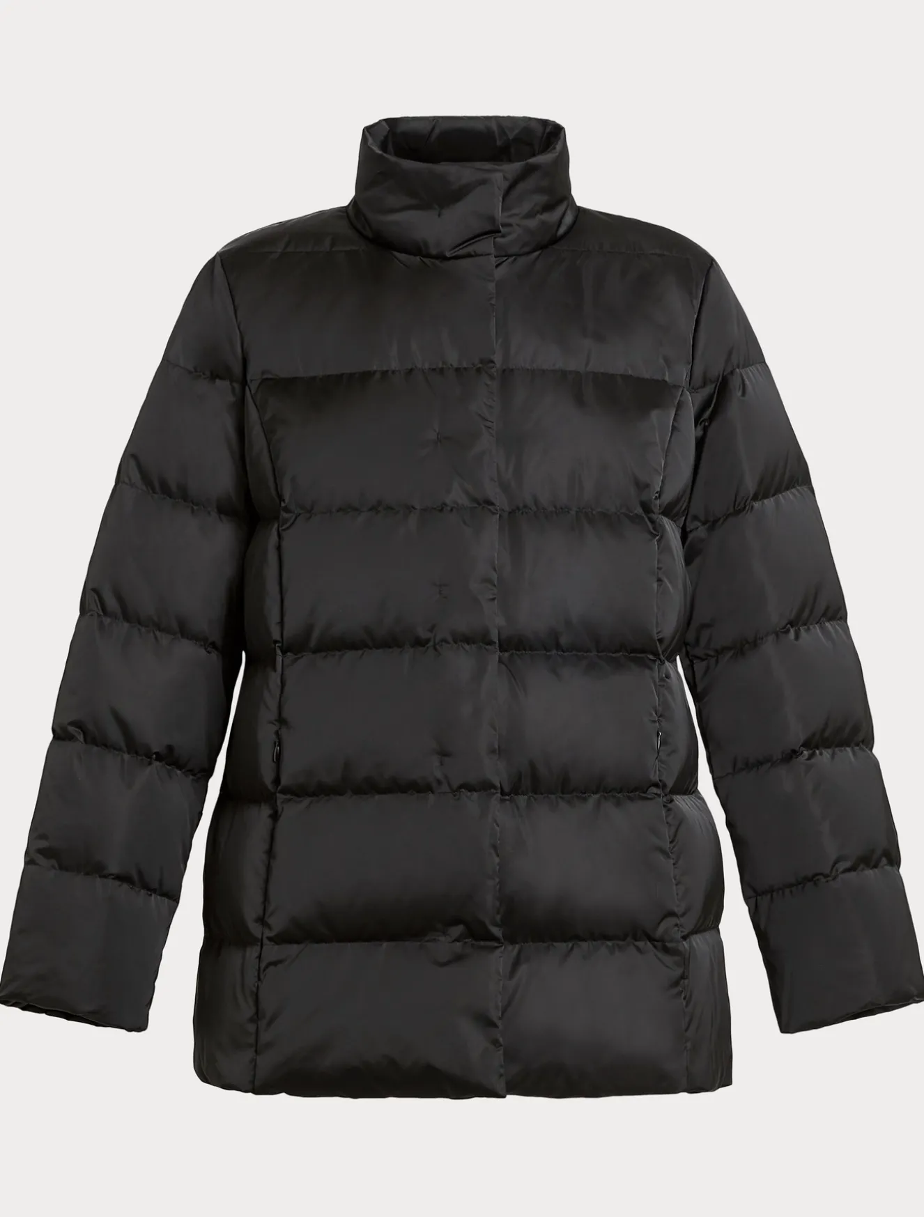 Daunenjacke aus Satin mit warmer Gänsedaunenfüllung, die sich durch stilvolle Details auszeichnet.Das Kleidungsstück ist Teil der Kollektion Persona by Marina Rinaldi.– Satin– Leicht engere Passform– Stehkragen mit abnehmbarem Lapinkragen– Lange Ärmel– Druckknopfverschluss– In die Teilungsnähte eingelassene Eingrifftaschen mit Reißverschluss– Wattierung aus Gänsedaunen