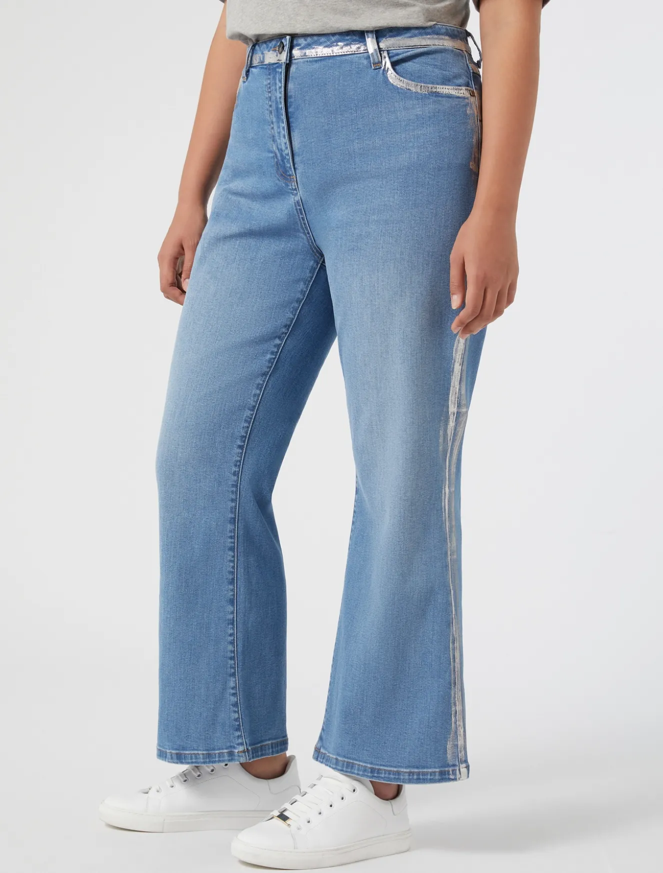 Der charaktervolle Ausgangspunkt für eine Vielzahl von Outfits. Setzen Sie auf diese Flare Jeans aus Stretch-Denim, die sich durch tabakfarbene Ziernähte auszeichnet. Einfach zu kombinieren wie auch zur Geltung zu bringen.