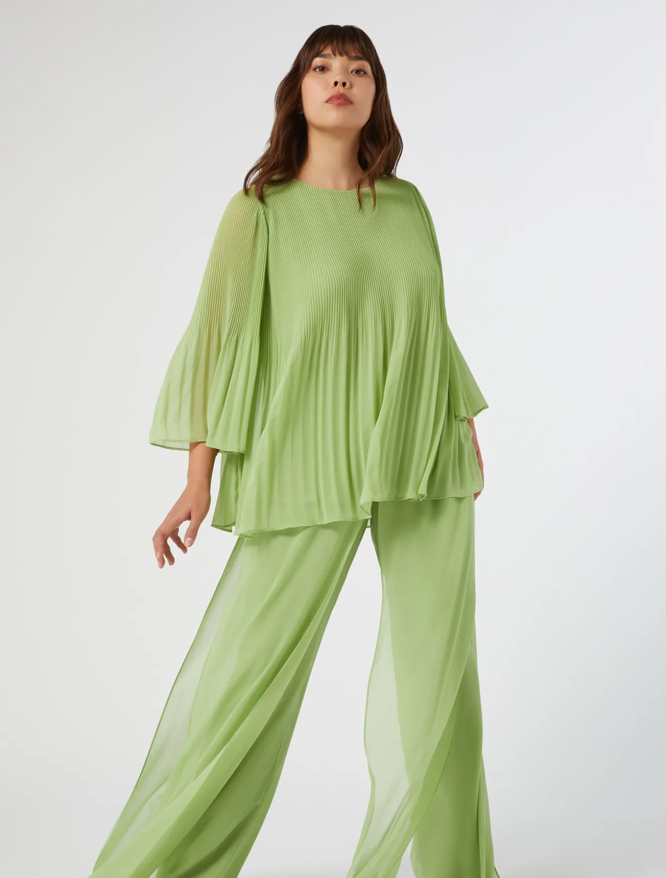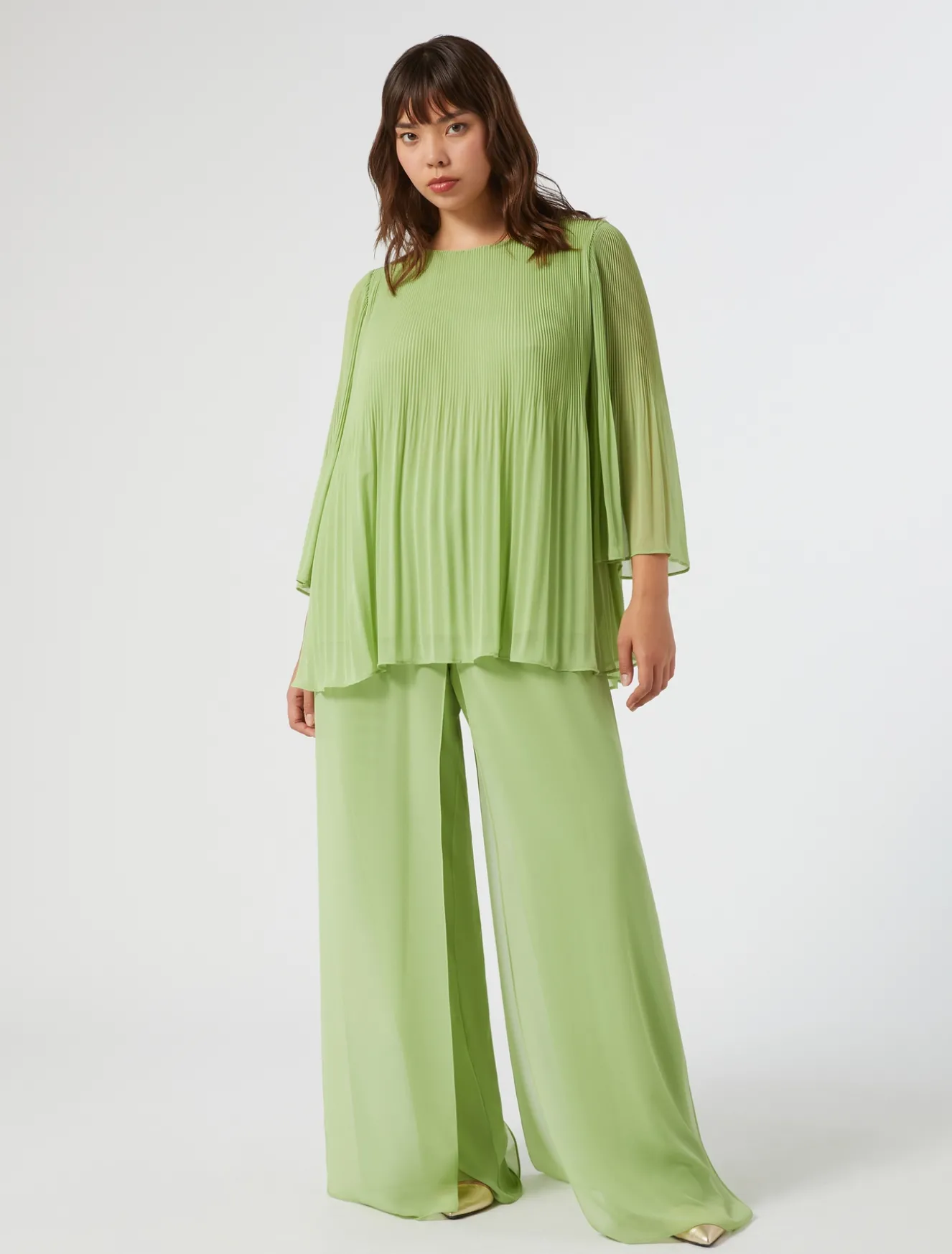 Elegante gerade geschnittene Hose aus Georgette mit seitlichen Schlitzen. Ein Basic, das mehr als nur ein Outfit perfekt abrundet.