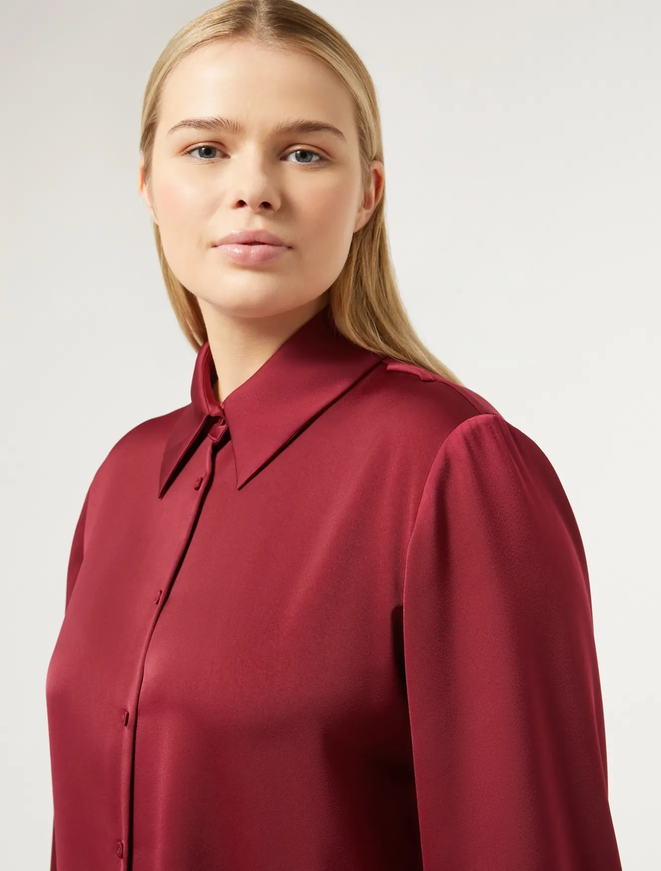 BCBG-Bluse aus Satin mit Hemdkragen, kurzen Ärmeln und einer Schärpe zum Befestigen an einer Schulter.Das Kleidungsstück ist Teil der Kollektion Persona by Marina Rinaldi.– Satin – A-Linie– Hemdkragen– Lange Ärmel mit Bündchen und Knopf– Mit Stoff im selben Farbton bezogenen Knöpfen– Schärpe wird auf einer Schulter geschlossen
