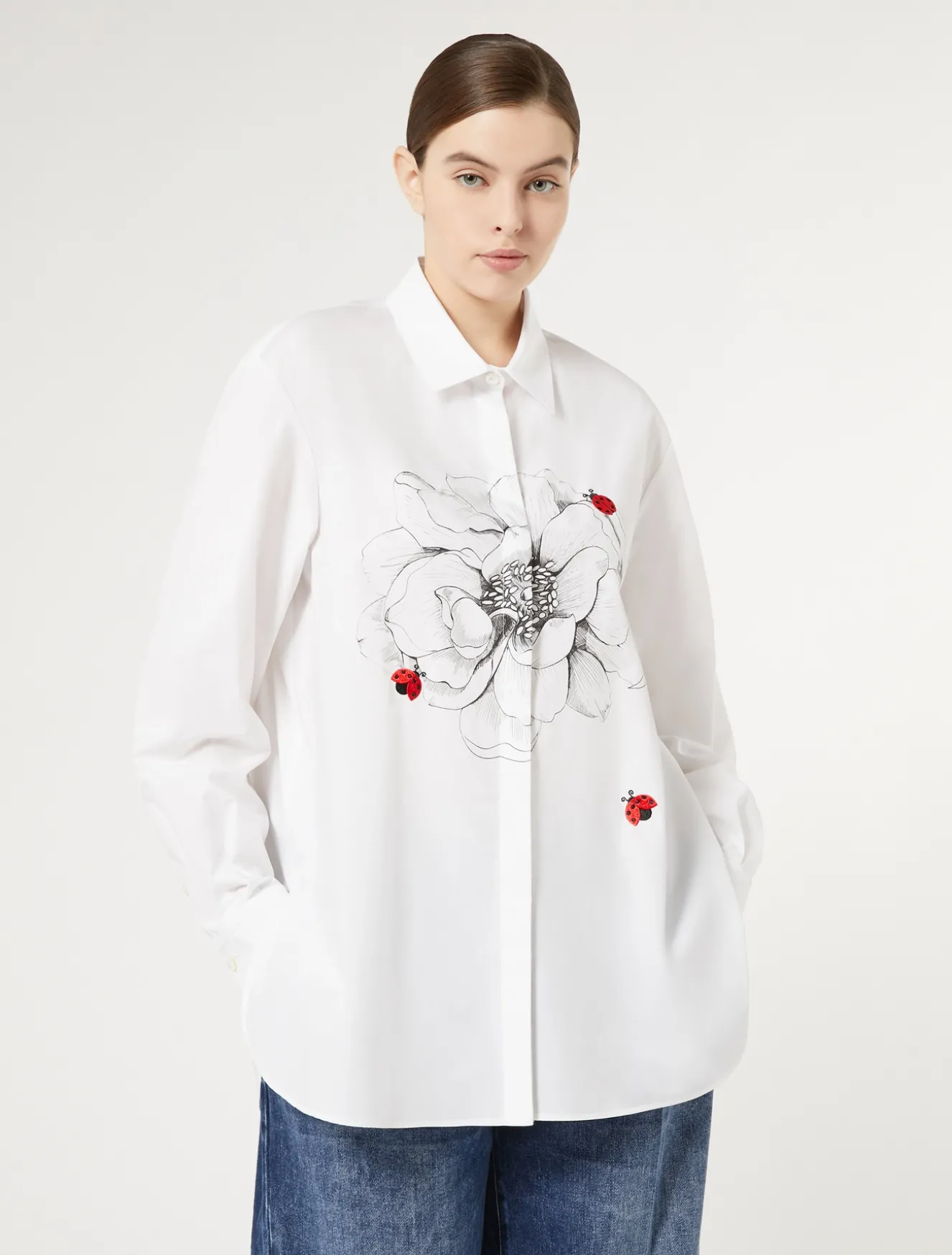 Dieses gerade geschnittene Hemd aus Baumwollpopeline zeichnet sich durch einen exklusiven Print und eine dekorative Stickerei aus. Ein raffiniertes Modell, um deine Alltagslooks aufzufrischen.Das Kleidungsstück ist Teil der Kollektion Marina Sport.