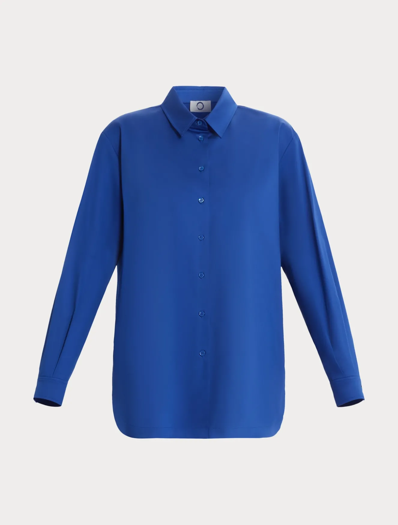 Hemdbluse aus elegantem Baumwoll-Satin mit Stretchanteil, lockerer Passform und abgerundetem Saum. Perfekt als Hemdbluse oder als offene Tunika. Verleiht jedem Look sofort einen besonderen Touch.Das Kleidungsstück ist Teil der Kollektion „Voyage“.