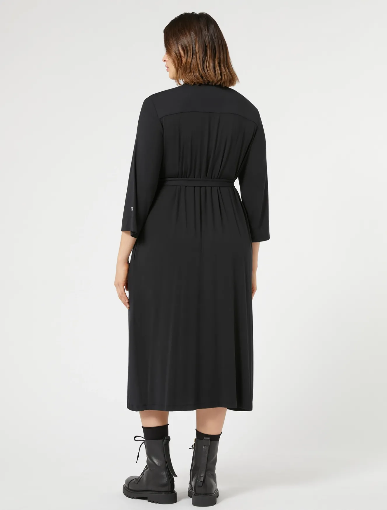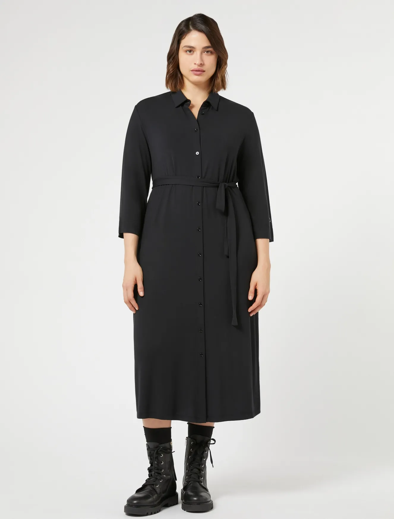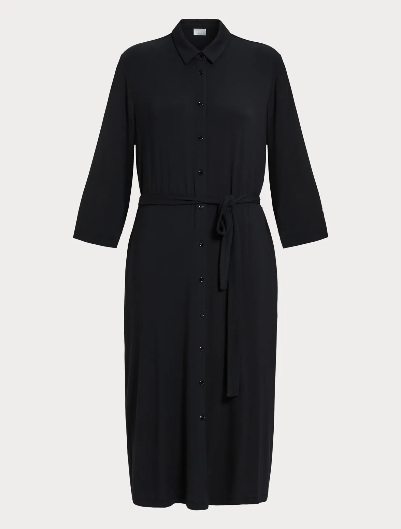 Gerade geschnittenes Hemdblusenkleid aus merzerisiertem Modal-Jersey, das einfach zu jedem Anlass passt. Du kannst den Sitz mit dem passenden Gürtel nach Belieben in der Taille regulieren. Das Kleidungsstück ist Teil der Kollektion Voyage Relax.