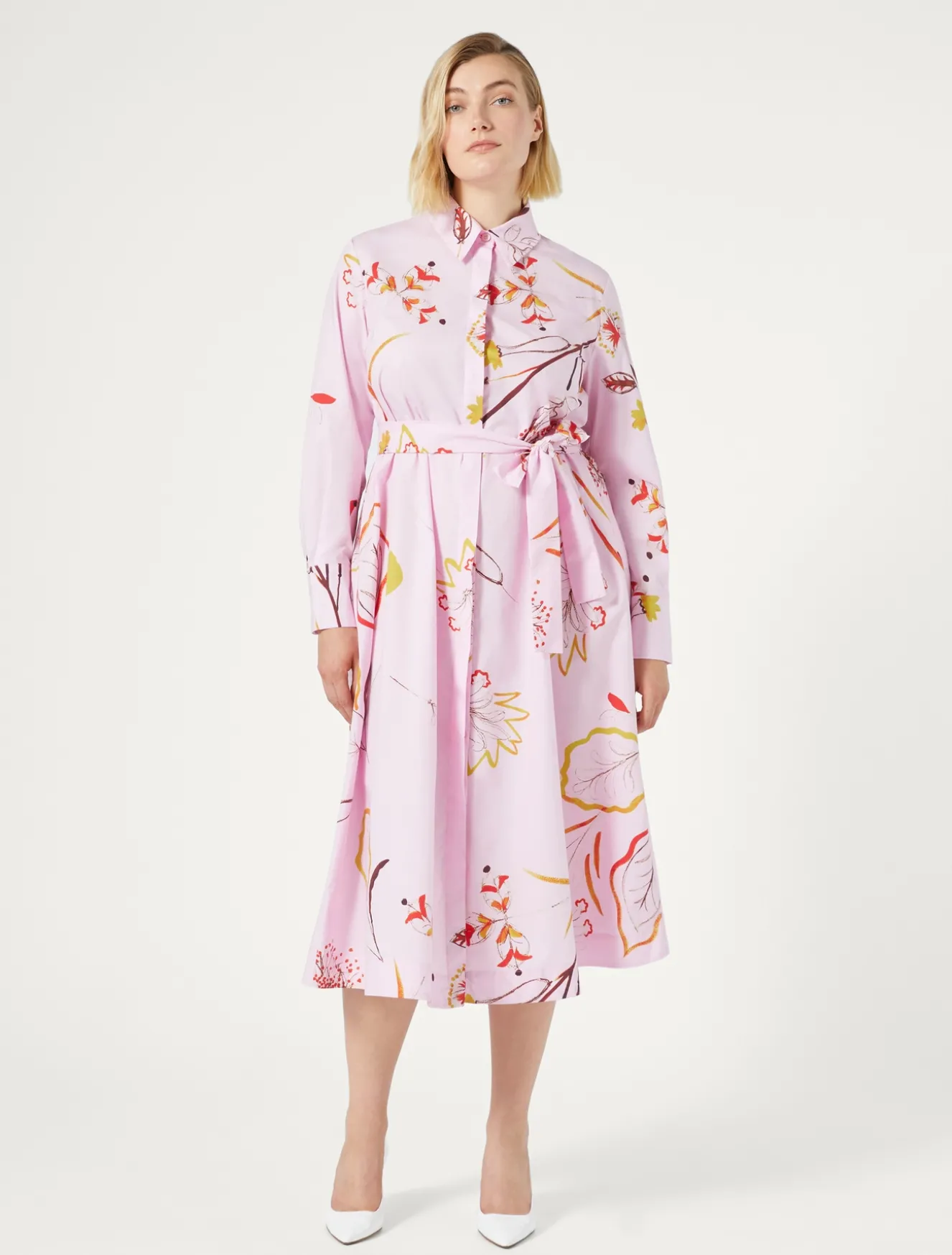 Hemdblusenkleid aus reiner Baumwollpopeline mit exklusivem Print. Du kannst den Sitz mit dem passenden Gürtel in der Taille regulieren.Dieses Modell gehört zur Hauptkollektion von Marina Rinaldi.