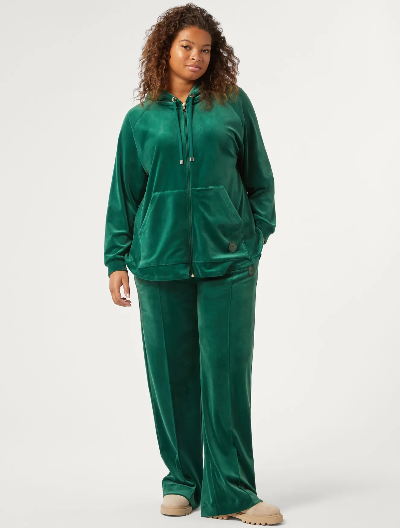 Bequeme und raffinierte Hose aus Chenille mit weitem Bein und Biesen vorne. Runde deine Freizeit-Outfits jetzt mit einem besonderen Touch ab.Das Kleidungsstück ist Teil der Kollektion Marina Sport.