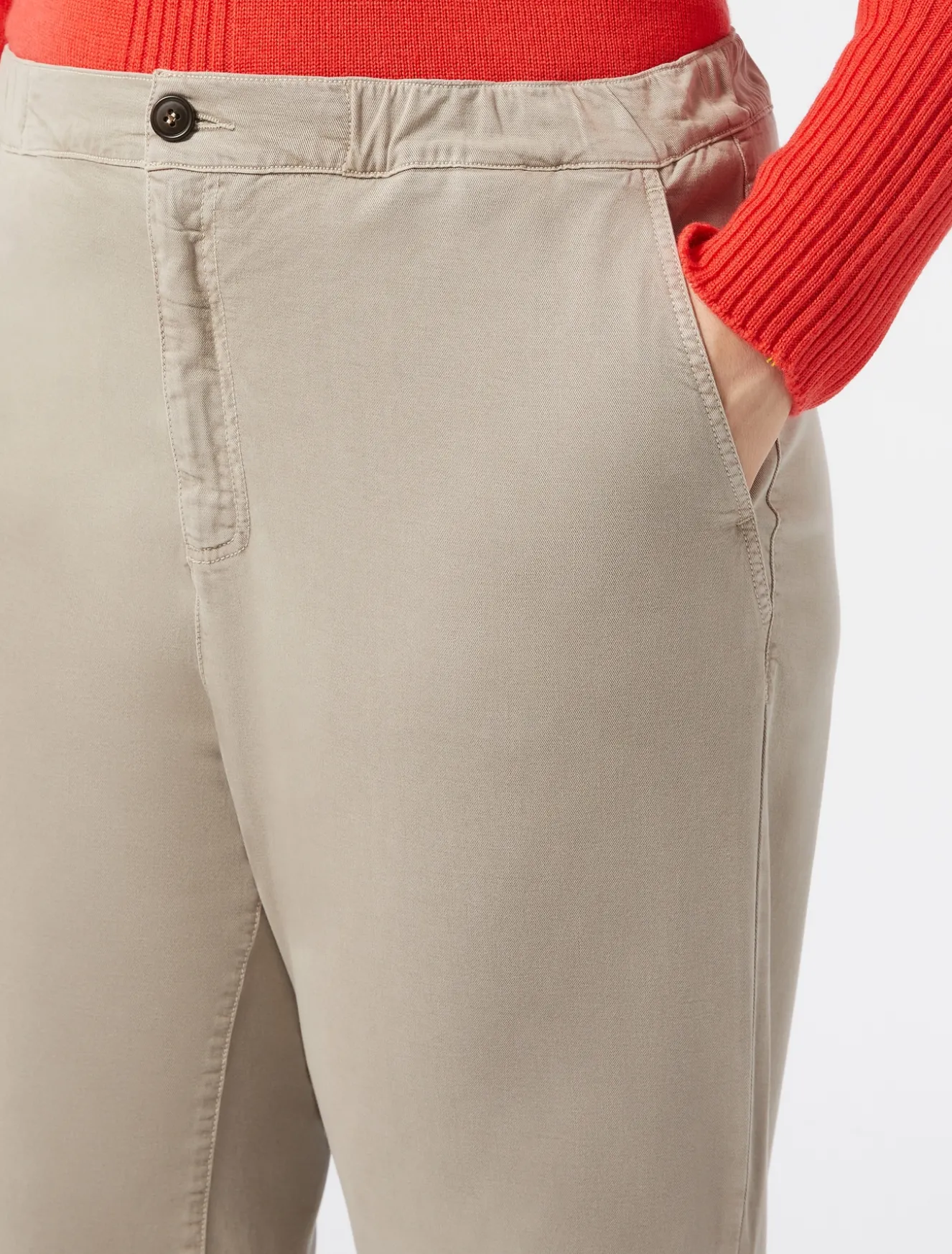 Diese vielseitige und einfach zu tragende Hose ist aus fließendem, stückgefarbtem Gabardine aus Viskose und Lyocell mit Stretchanteil. Sportive Attitüde, die den Style im Handumdrehen ergänzt.Das Kleidungsstück ist Teil der Kollektion Marina Sport.