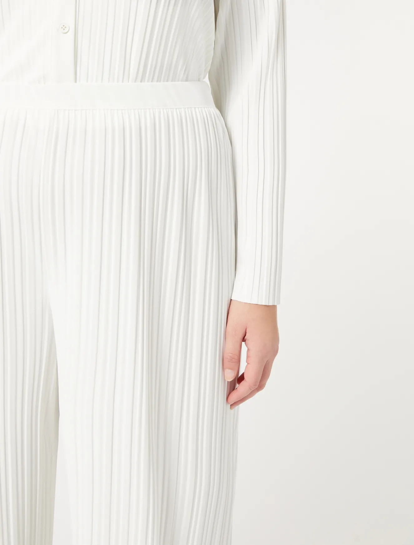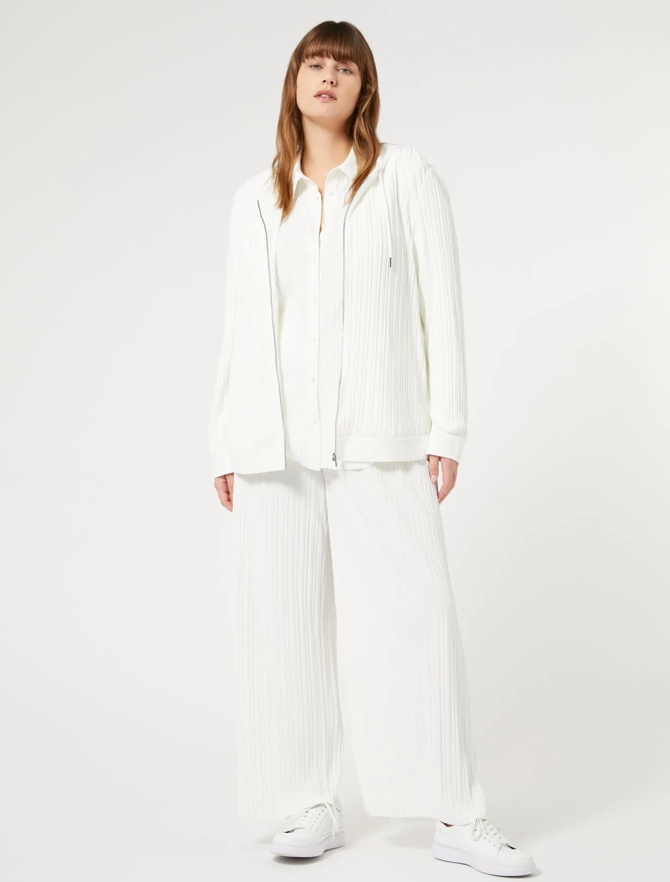 Weite, weich fallende Hose aus plissiertem Jersey. Einfach zu kombinieren, und am besten natürlich mit der dazu passenden Jacke.Das Kleidungsstück ist Teil der Kollektion Voyage Relax.