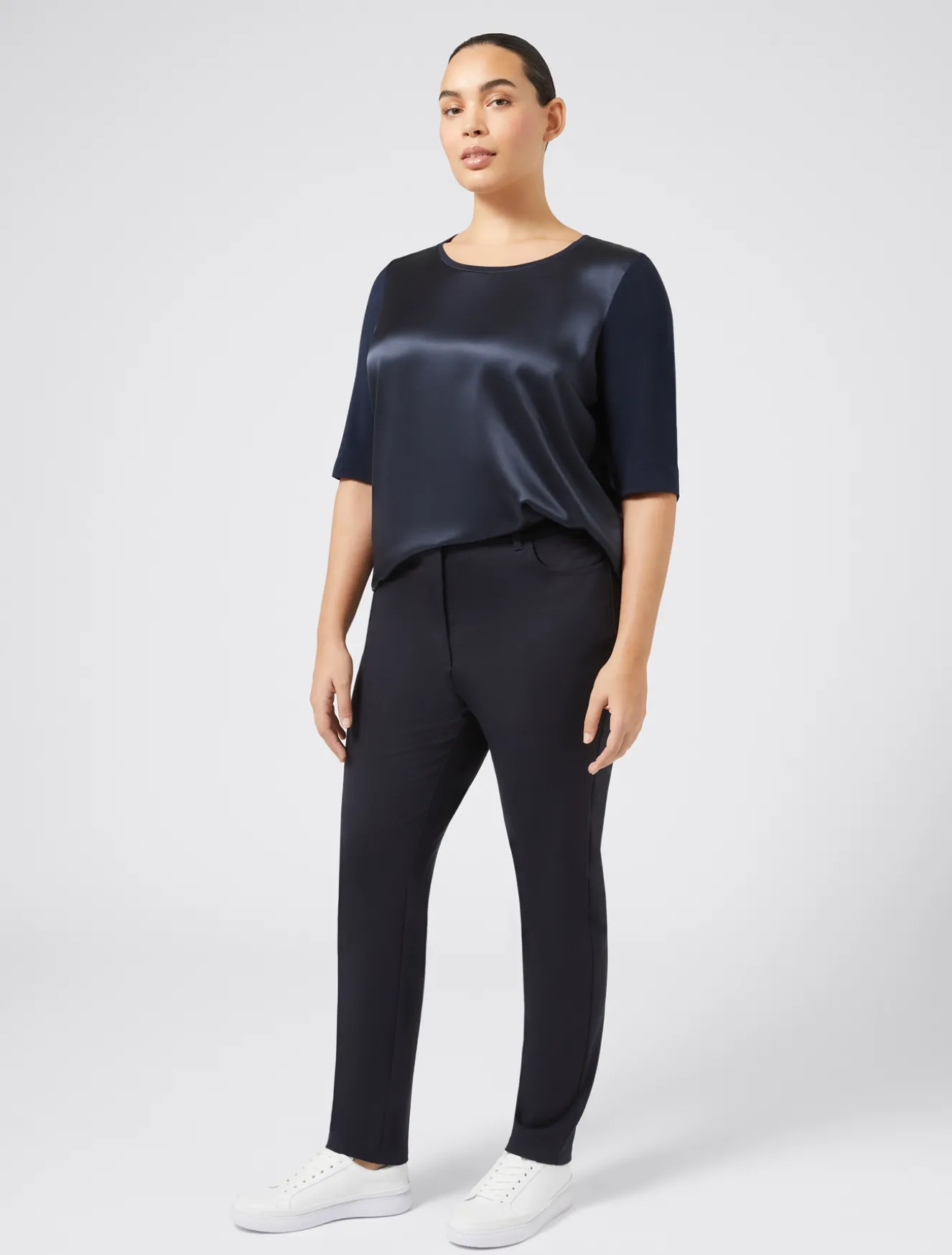 Zeitloser Charme und ein bequemer Look zeichnen diese schmal geschnittene Jerseyhose in Punto Milano aus. Ein unverzichtbares Modell, das mühelos mit den meisten Kleidungsstücken deiner Garderobe kombiniert werden kann.