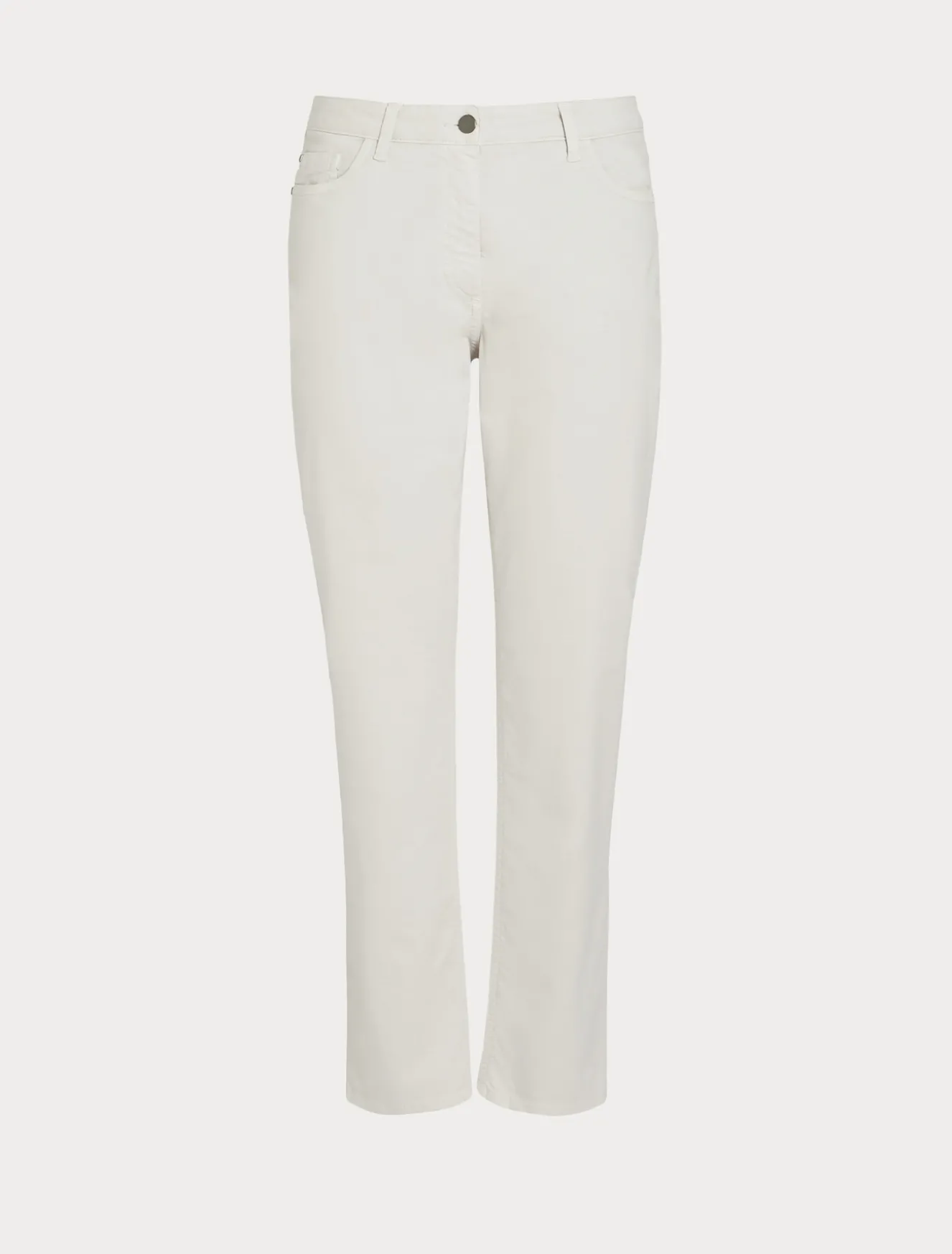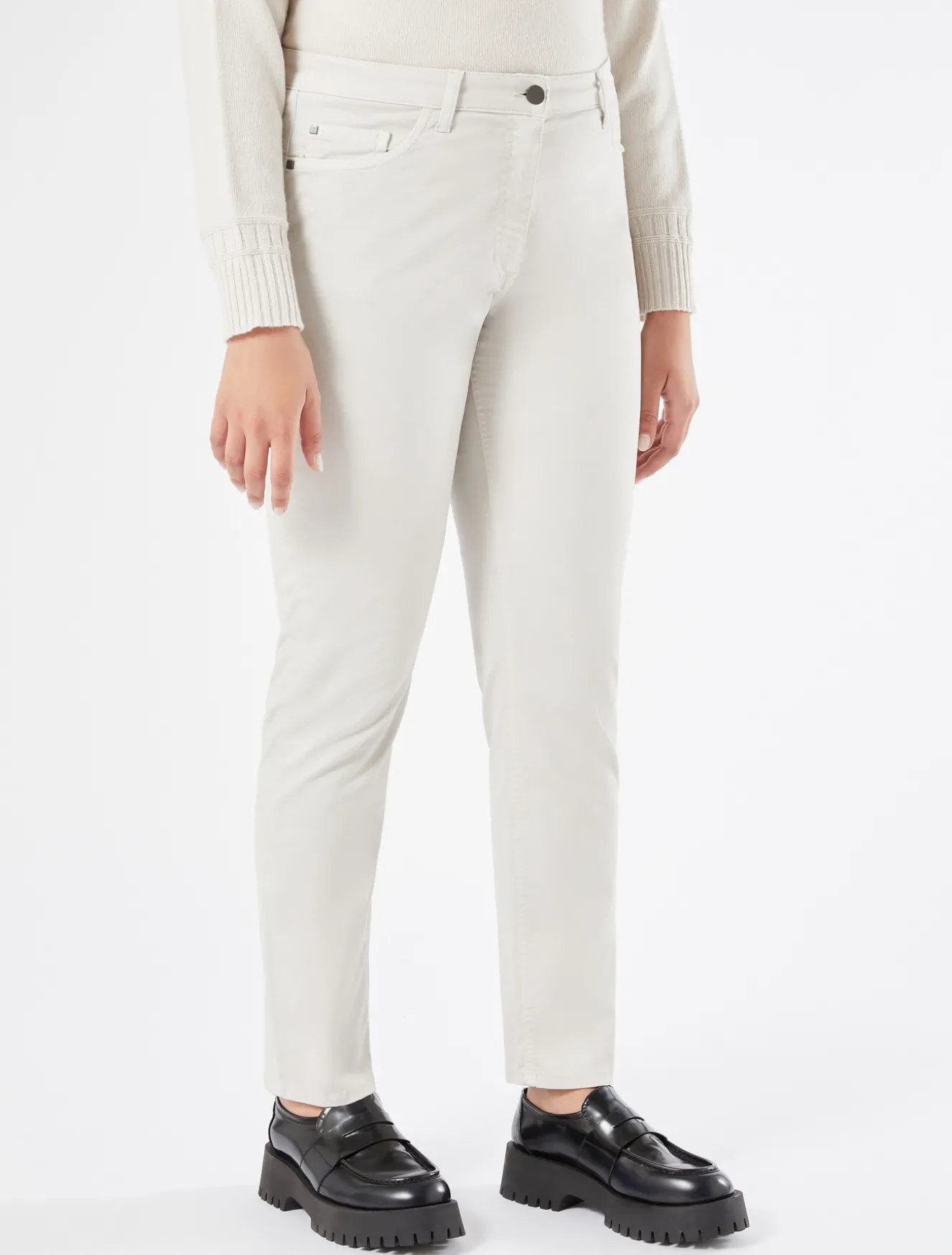 Five-Pocket-Design für die Hose aus gefrostetem Baumwoll-Stretch-Satin mit einer formgebenden Linie und Abnähern hinten, die die Silhouette betonen.Das Kleidungsstück ist Teil der Kollektion Persona by Marina Rinaldi.– Satin– Shaping-Linie– Reißverschluss und Knopf– Five-Pocket-Design– Gürtelschlaufen an der Taille