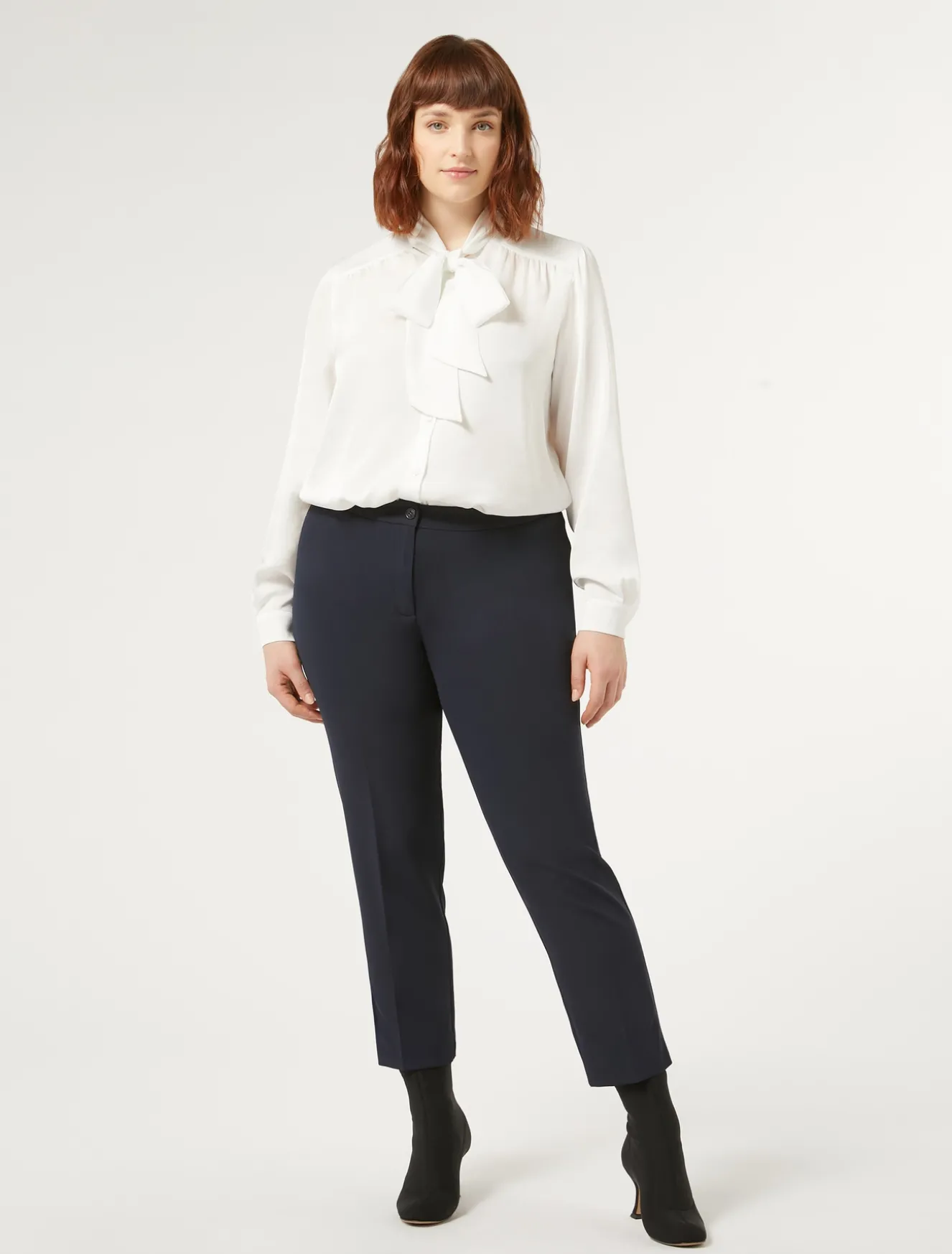 Diese Twill-Hose mit Elastikeinsatz am Bund hinten sitzt wie eine zweite Haut. Mit praktischem Reißverschluss und Knopf. Ideal im Set mit der dazu passenden Jacke.Das Kleidungsstück ist Teil der Kollektion Persona by Marina Rinaldi.– Twill– Slim-Fit– Reißverschluss und Knopf– Elastikband hinten am Bund– Bügelfalte