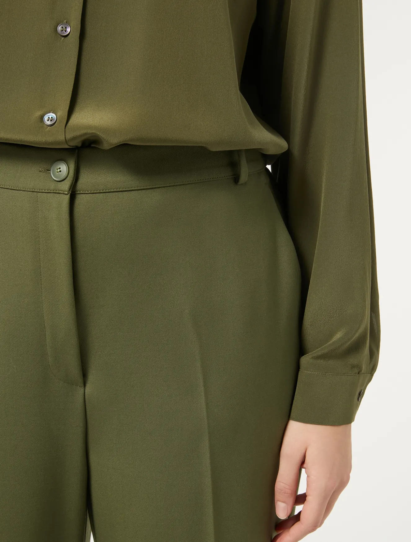 Die gerade geschnittene Hose ist aus technischem Wollgabardine mit Stretchanteil gefertigt. Raffiniertes Modell, das sich leicht kombinieren lässt.Das Kleidungsstück ist Teil der Kollektion „Voyage“.