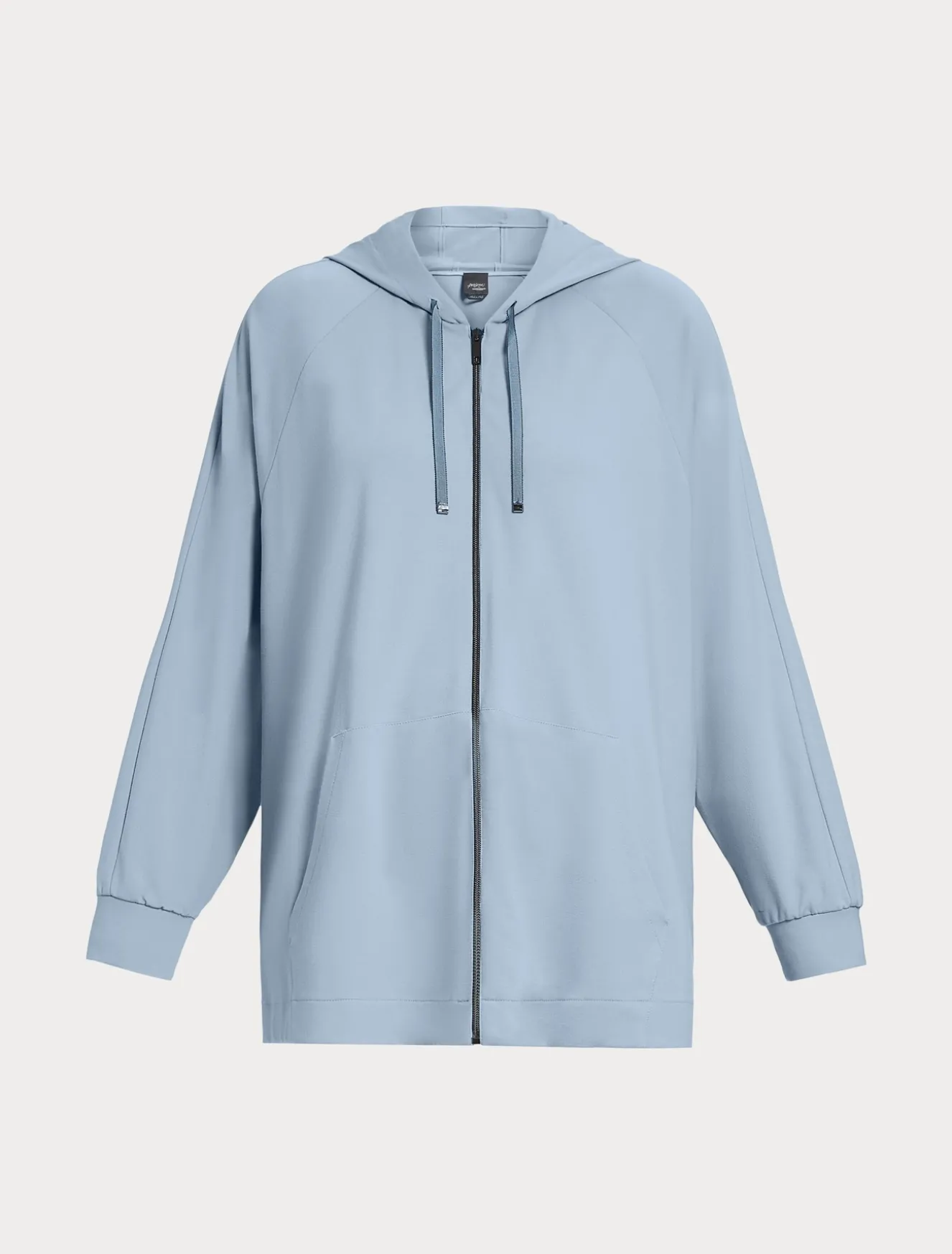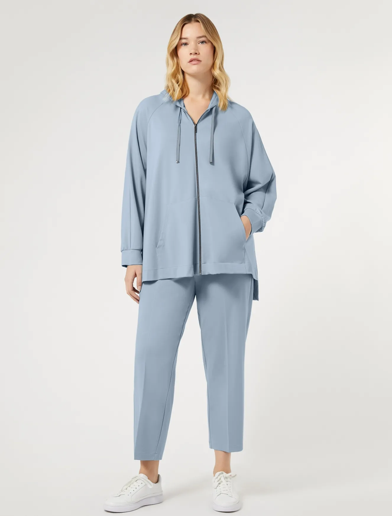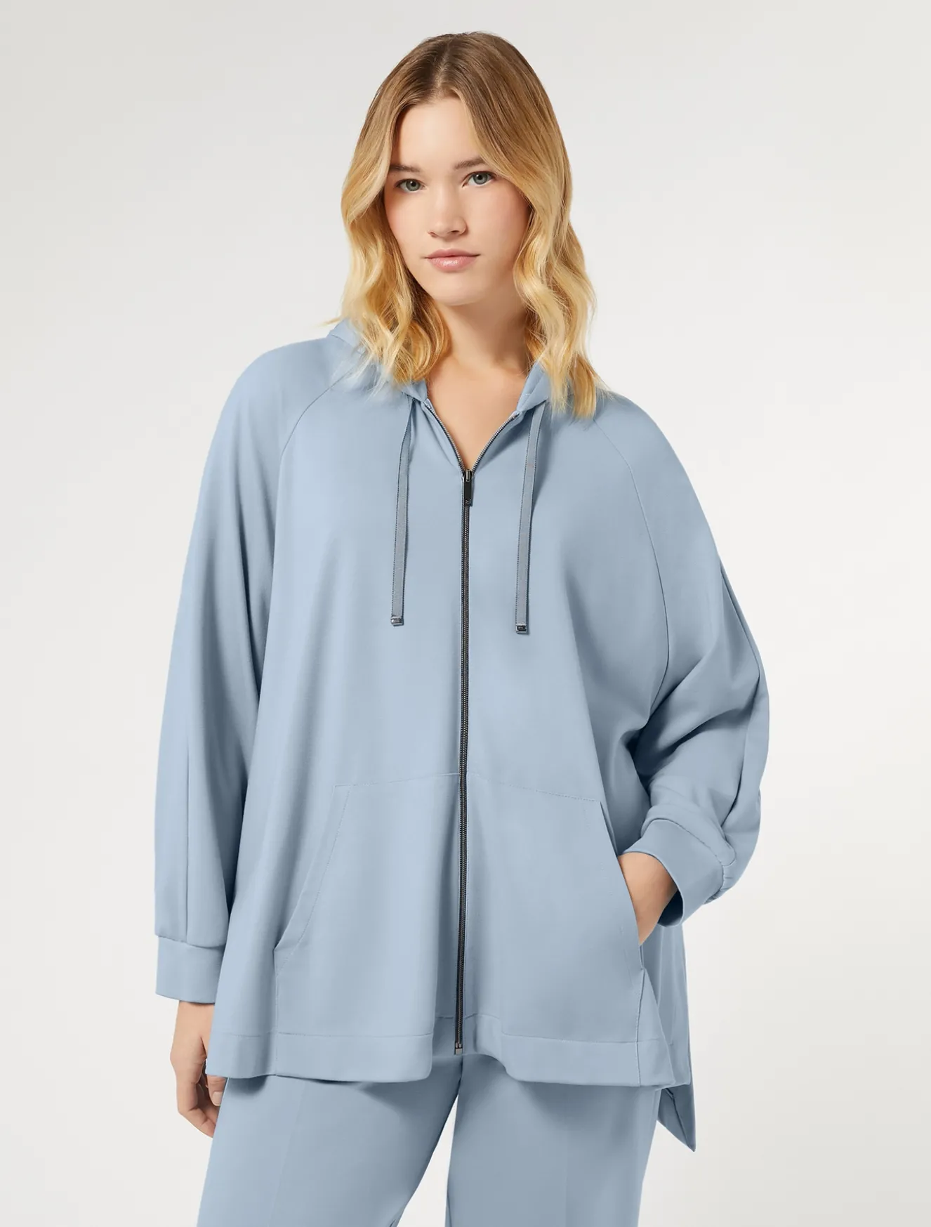 Diese Jacke aus Jersey im Jogging-Stil mit funktionellen Details wie einer Kapuze mit Kordelzug und Kängurutaschen sorgt für stylische Bewegungsfreiheit.Das Kleidungsstück ist Teil der Kollektion Persona by Marina Rinaldi.