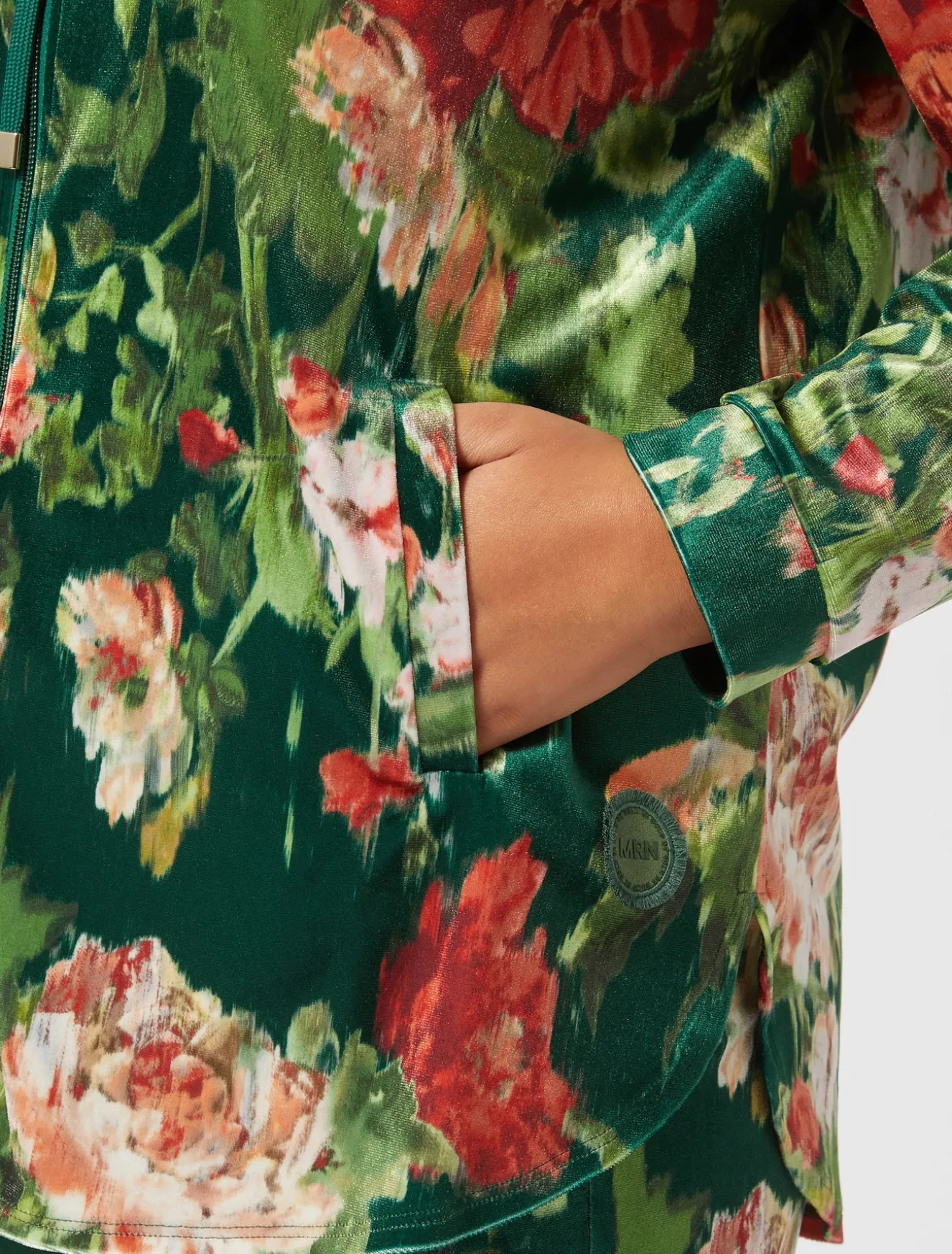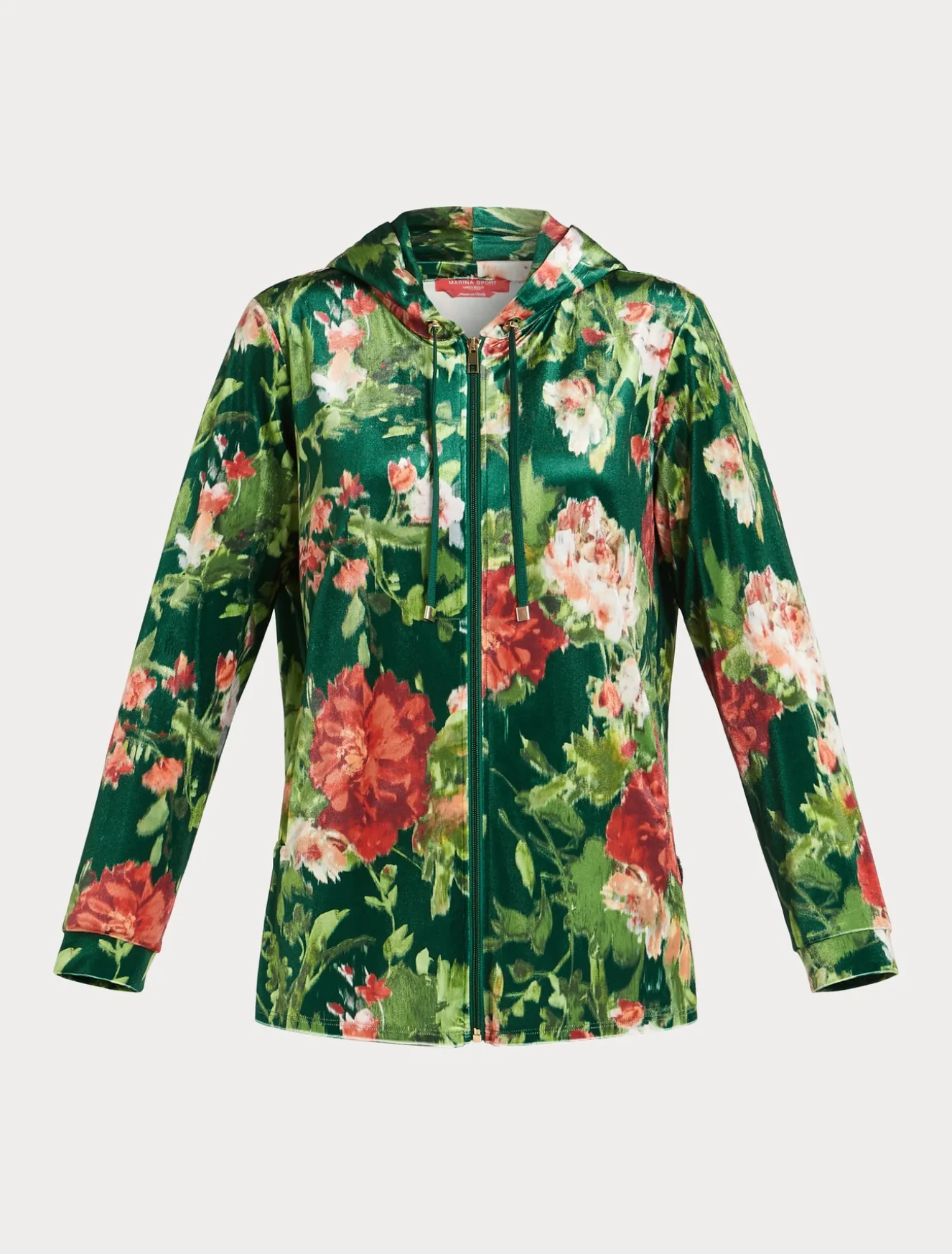 Diese Jacke aus bedrucktem Samt-Jersey mit Kapuze und asymmetrischem Saum besitzt eine sportliche Attitüde. Das Modell verleiht deinen Looks eine grafische Note, auch in Kombination mit der passenden Hose.Das Kleidungsstück ist Teil der Kollektion Marina Sport.