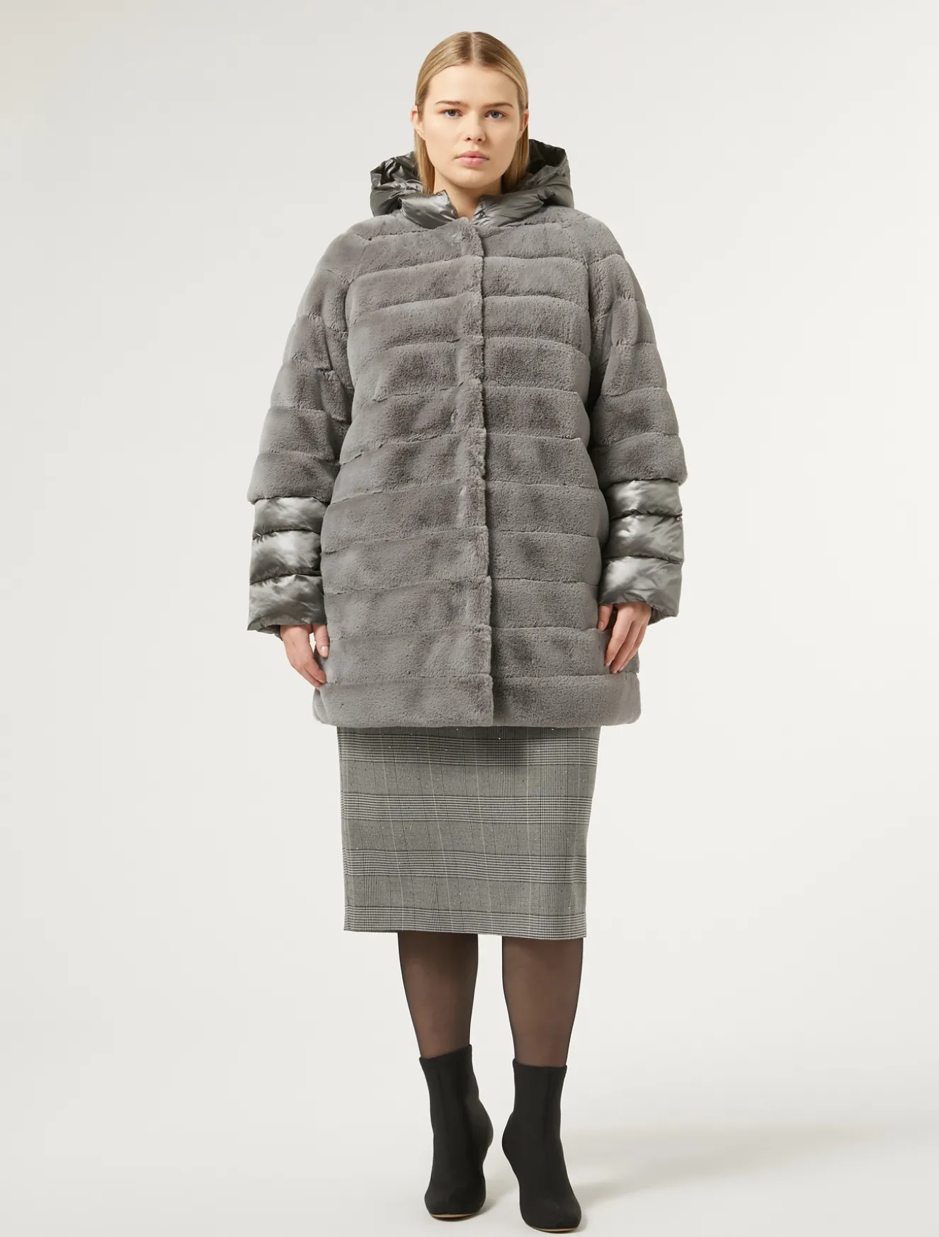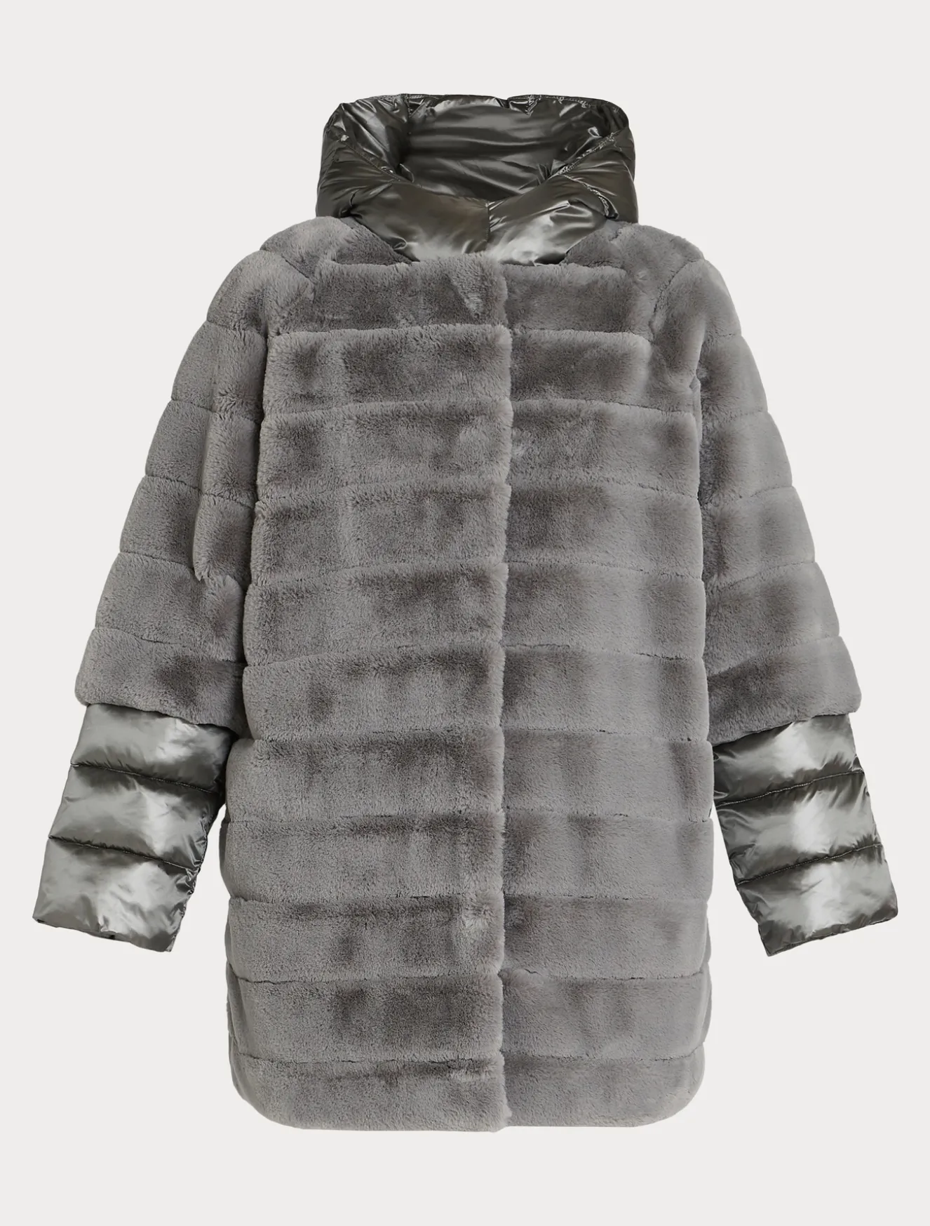 Jacke aus Stoff in Felloptik und Nylon-Canvas