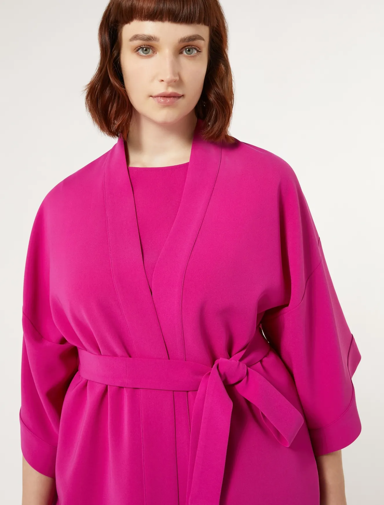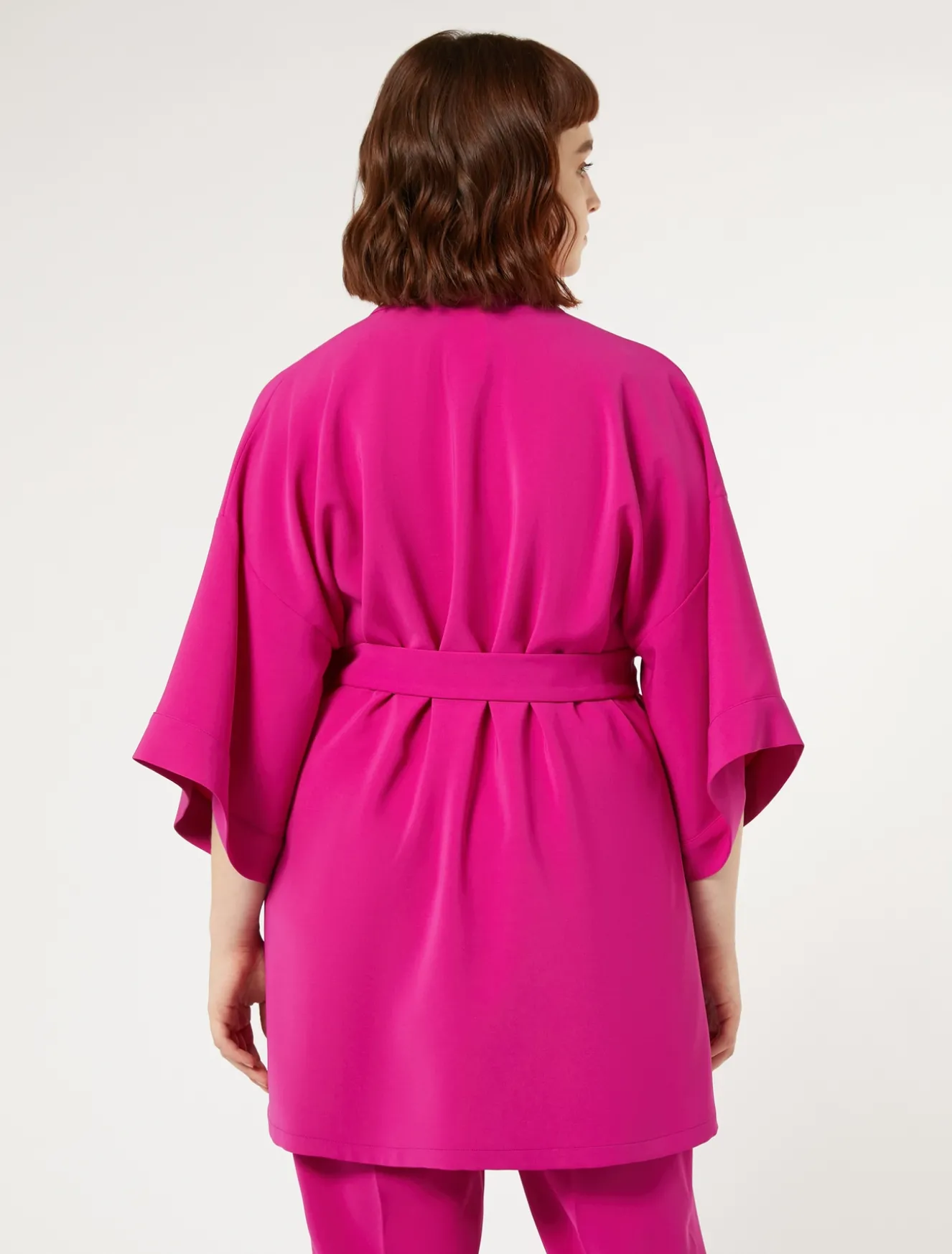 Dieser Kimono-Kasack ist aus Comort Triacetat-Cady gefertigt, einem fließenden Material, das Problemzonen kaschiert und pflegeleicht ist. Kragen und Bündchen mit Paspeldetails. Gut mit dem passenden Top und den passenden Hosen zum Set kombinierbar.Dieses Modell gehört zur Hauptkollektion von Marina Rinaldi.