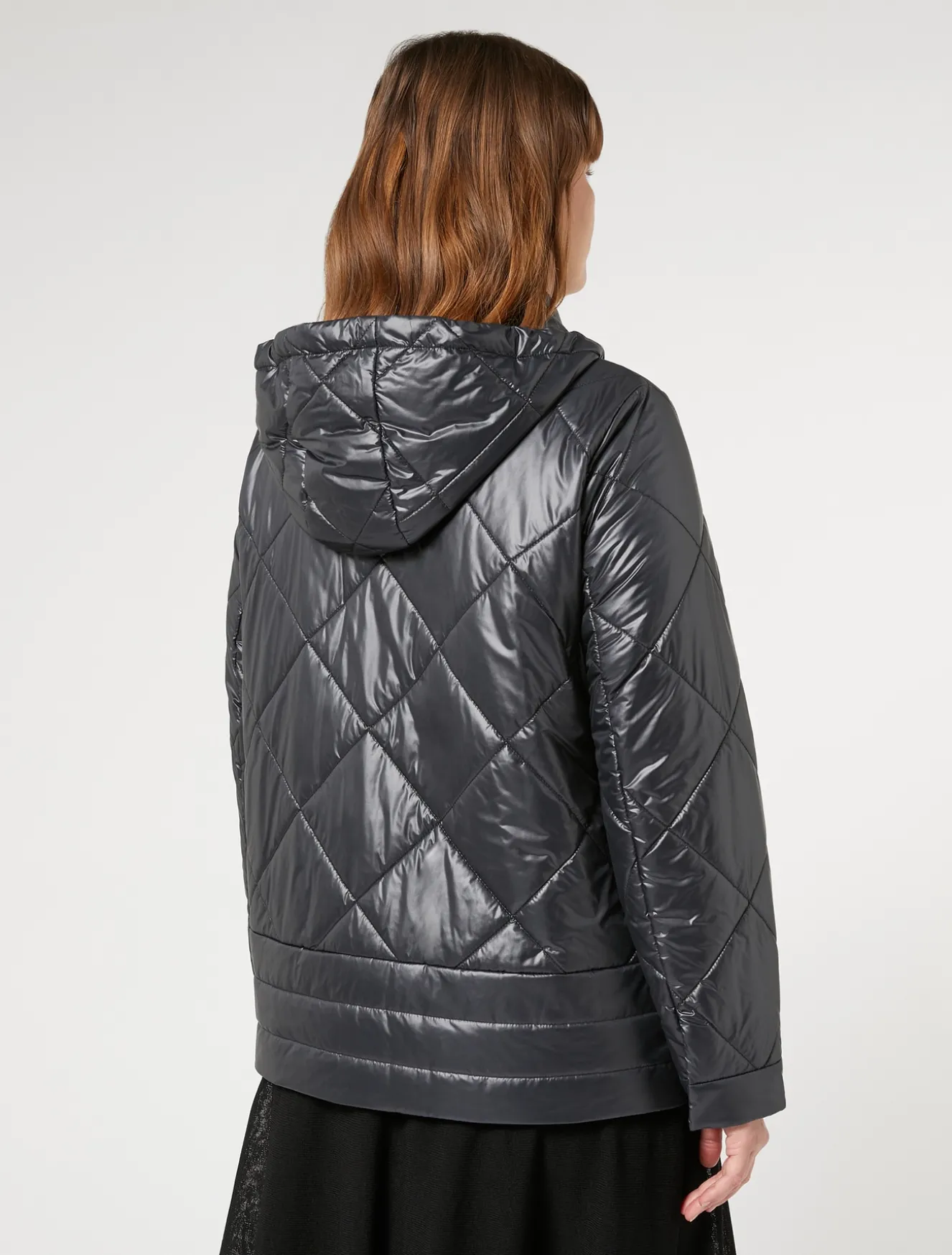 Regenjacke aus Funktions-Canvas mit Rautensteppung und horizontalen Streifen am Saum. Die Luxepad Ultra Fine Insulating Technology-Wattierung wurde entwickelt, um auch an kalten Tagen für eine optimierte Körpertemperatur zu sorgen.Das Kleidungsstück ist Teil der Kollektion „Voyage“.