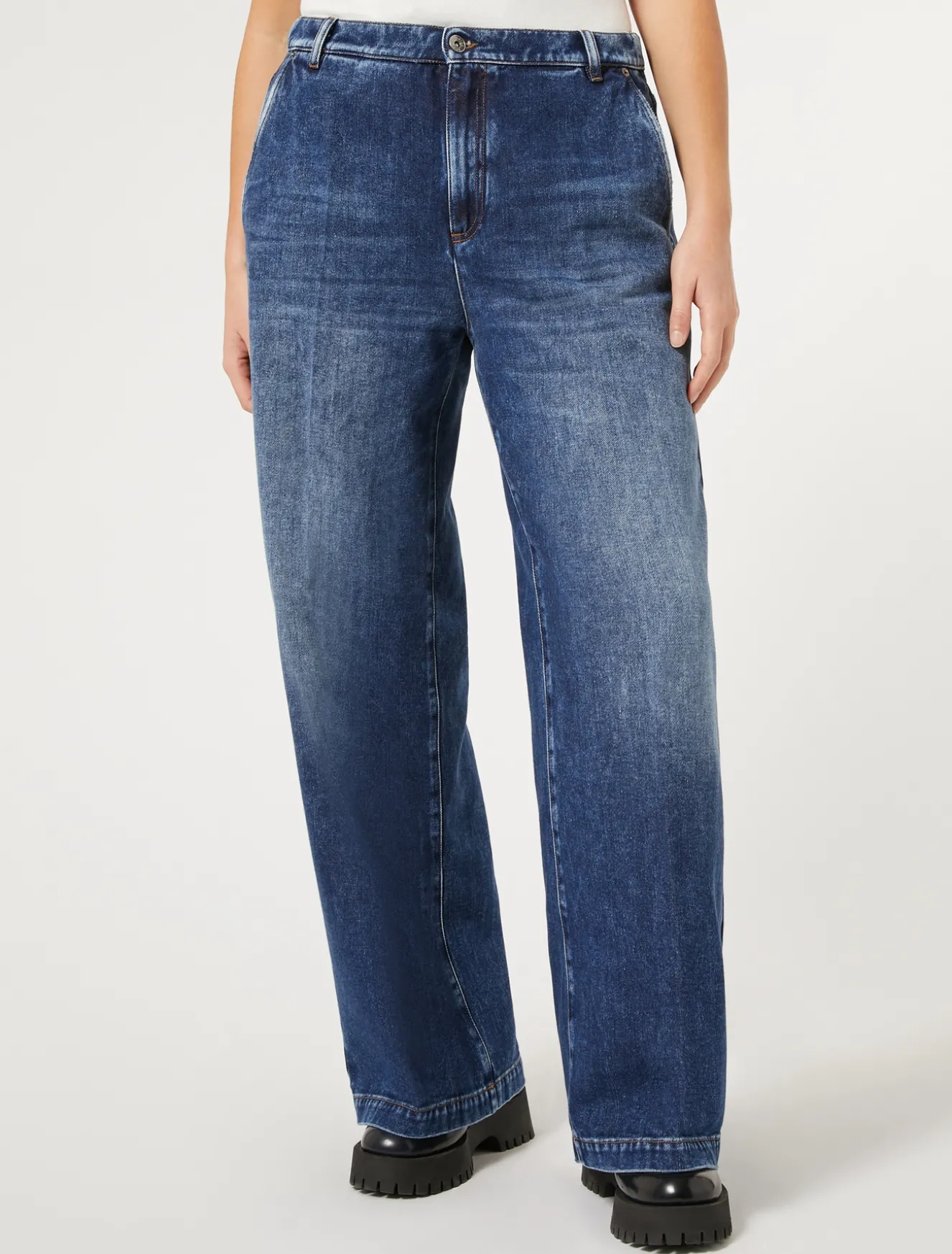 Passepartout-Jeans aus angenehm weichem Lyocell-Baumwoll-Denim. Mit elastischem Einsatz am hinteren Bund für eine bessere Passform. Dazu wird sie von handgefertigten Rissen und Whiskern geziert.Das Kleidungsstück ist Teil der Kollektion Marina Sport.