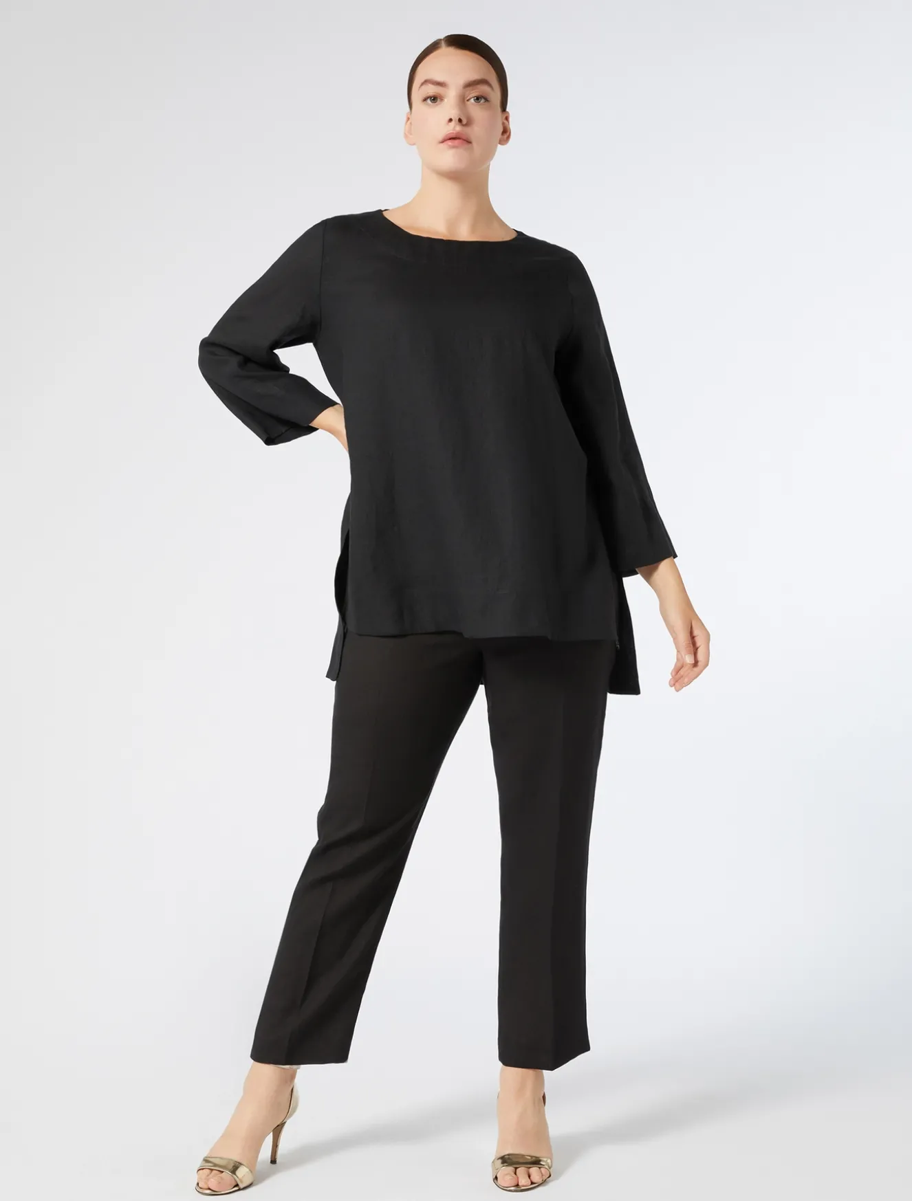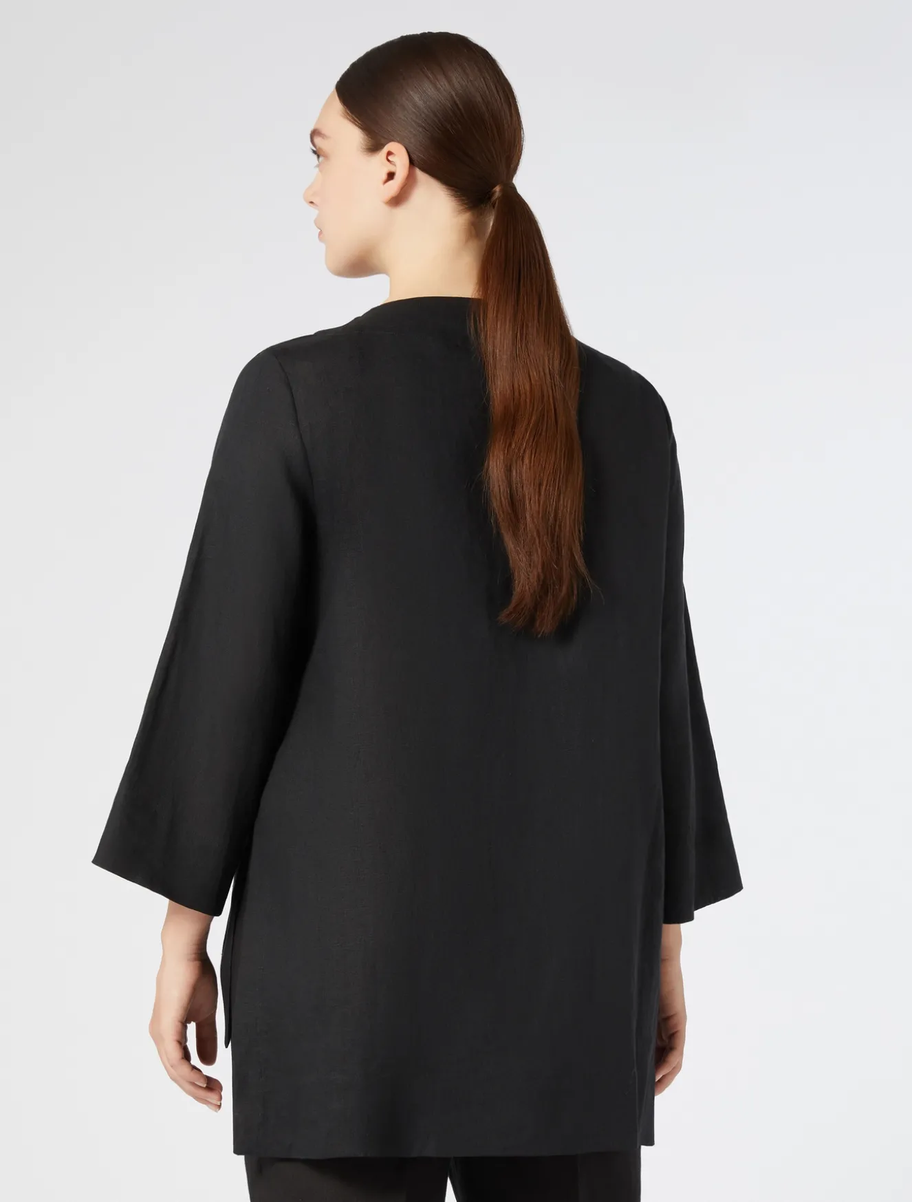 Der Kasack im Boxy-Fit ist aus leichtem, reinem Leinen-Canvas gefertigt. Ein Must-have für die Garderobe, das sich auch mit der passenden Hose und Bermudashorts für elegante und raffinierte Looks kombinieren lässt. Das Kleidungsstück ist Teil der Hauptkollektion von Marina Rinaldi