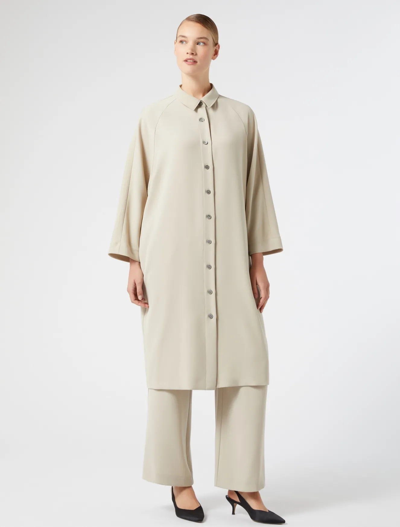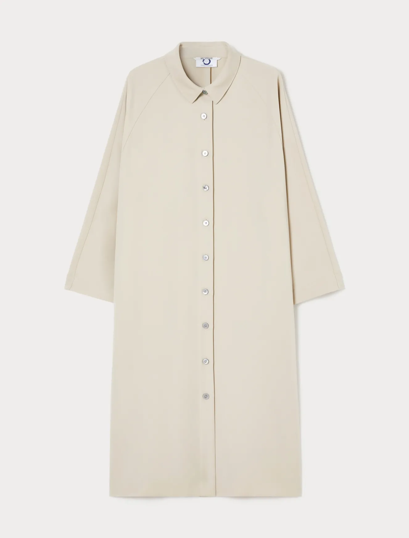 Gerade geschnittenes Hemdkleid aus Envers-Satin-Kreppstoff, das sich von einer ausgesprochenen vielseitigen Seite zeigt. Es lässt sich sowohl im Büro als auch in der Freizeit tragen, wie auch in Kombination mit der dazu passenden Hose.