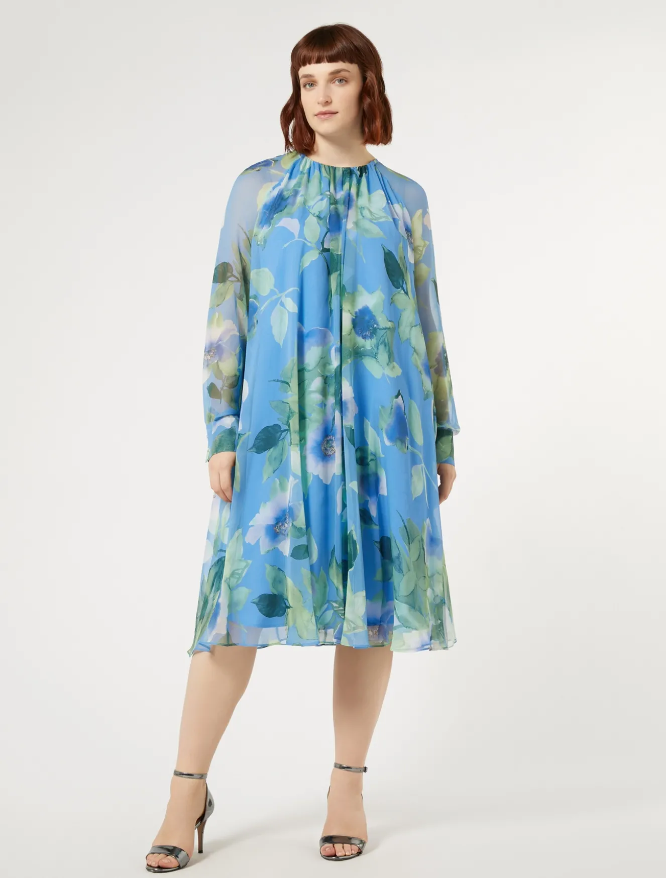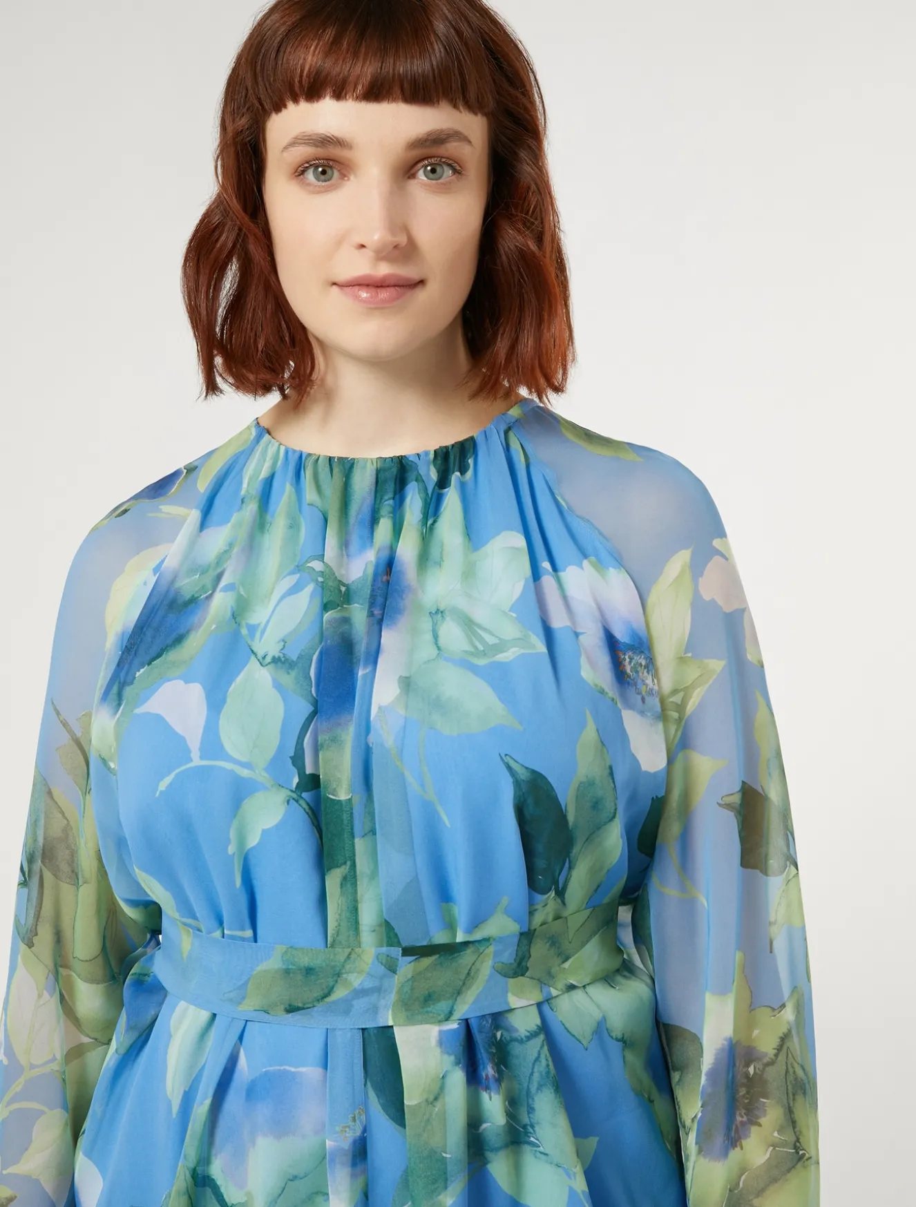 Dieses romantische und schwerelose Kleid aus Seiden-Georgette besticht durch seinen exklusiven Print. Du kannst den Sitz mit dem passenden Gürtel in der Taille regulieren. Bestens geeignet, um bei einer Zeremonie getragen zu werden.Das Kleidungsstück ist Teil der Kollektion Elegante.