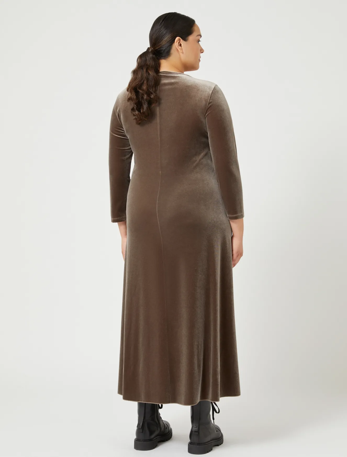Dieses Kleid aus Stretch-Chenille mit V-Ausschnitt hat Dreiviertelärmel und eine ausgestellte Silhouette.Das Kleidungsstück ist Teil der Kollektion Persona by Marina Rinaldi.– Stretch-Chenille– Ausgestellter Schnitt– V-Ausschnitt– Dreiviertelärmel
