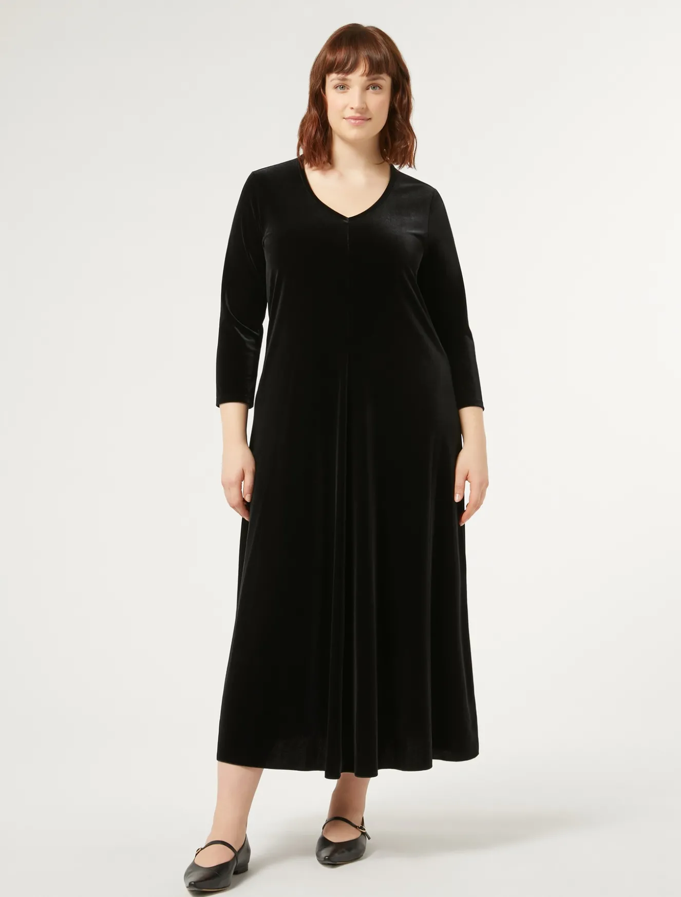 Dieses Kleid aus Stretch-Chenille mit V-Ausschnitt hat Dreiviertelärmel und eine ausgestellte Silhouette.Das Kleidungsstück ist Teil der Kollektion Persona by Marina Rinaldi.– Stretch-Chenille– Ausgestellter Schnitt– V-Ausschnitt– Dreiviertelärmel