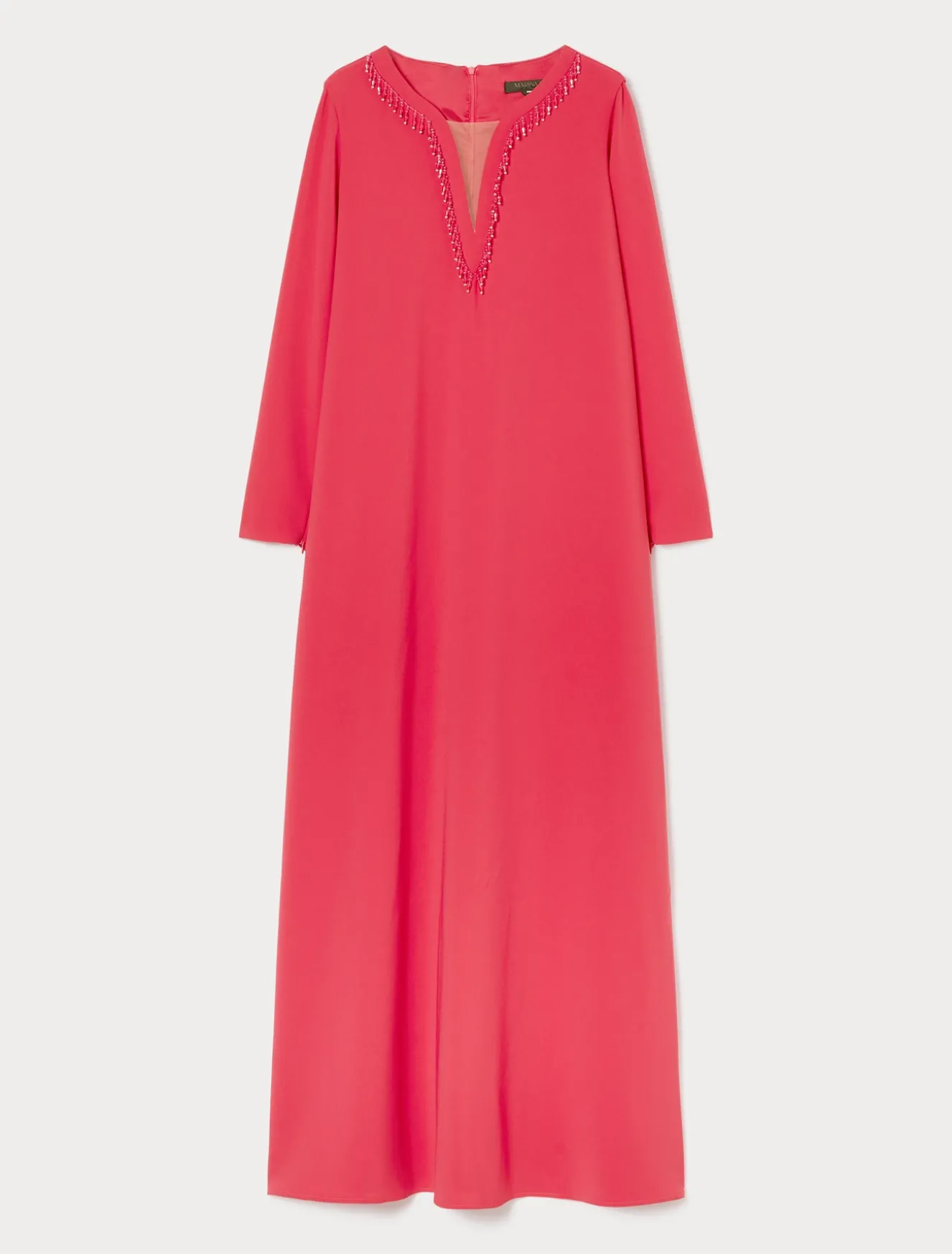 Dieses Kleid aus Triacetat-Cady verfügt über einen Ausschnitt mit einer Tüllapplikation und einen gewebten Einsatz, und erfreut sich zudem eines Jais-Besatzes mit Fransen im selben Farbton.