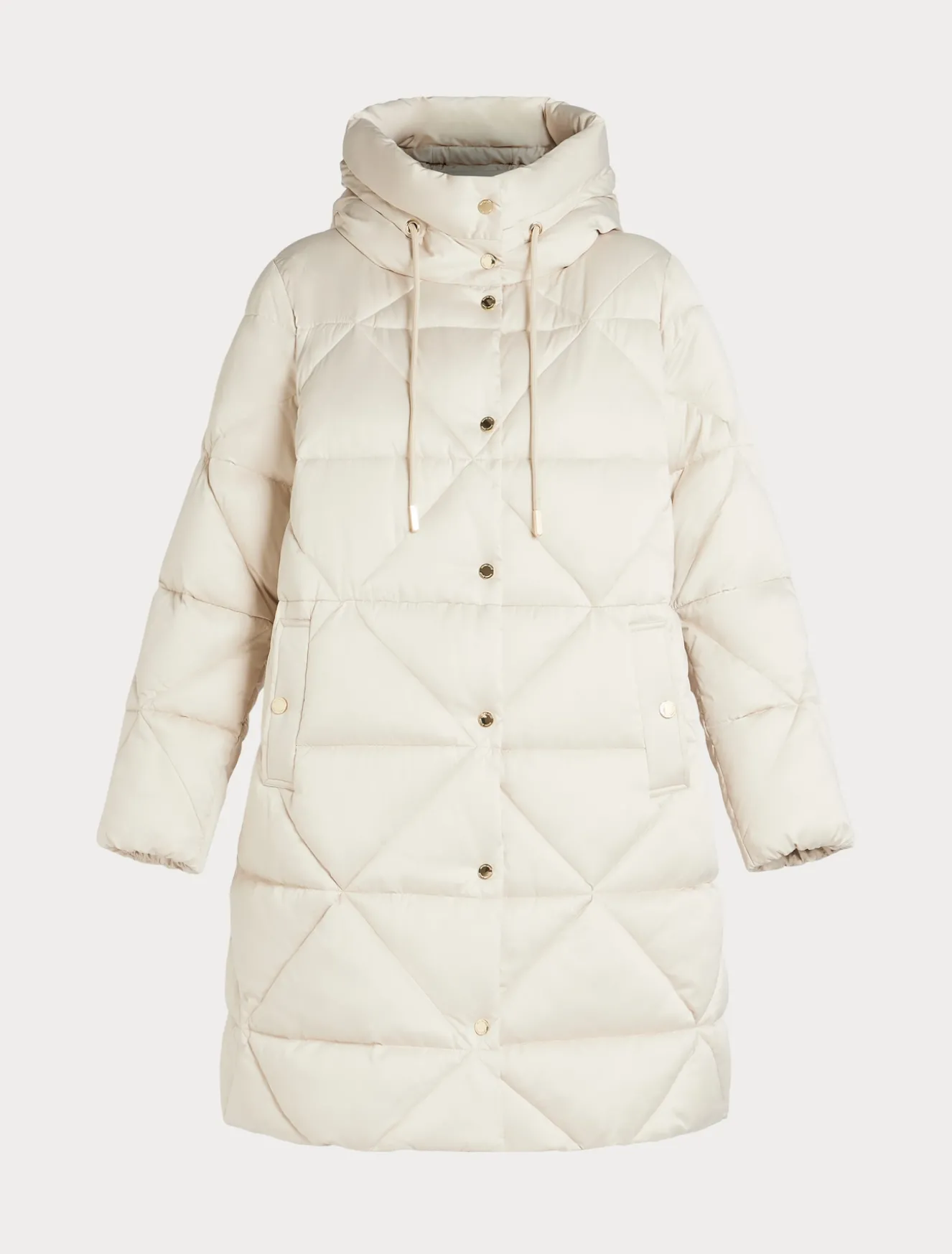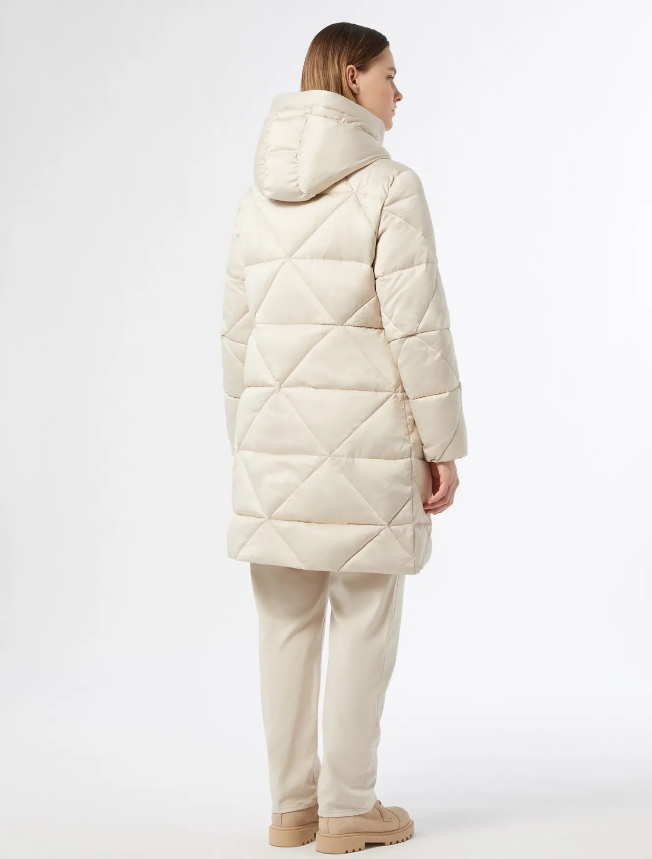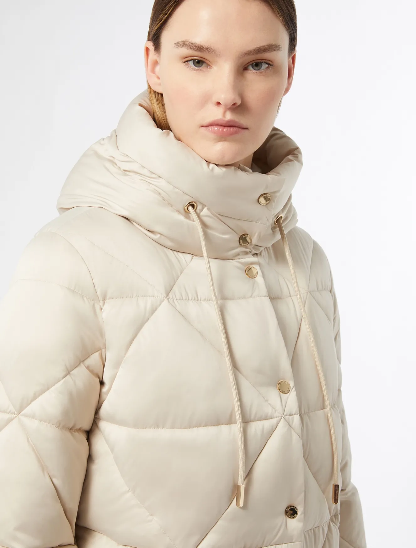 Wattierte lange Jacke mit Rautensteppung in wasserabweisendem Satin. In der Taille mit dem innenliegenden Tunnelzug regulierbar, ist sie die perfekte Wahl, um deine Looks der Saison zu vervollständigen.Das Kleidungsstück ist Teil der Kollektion Marina Sport.