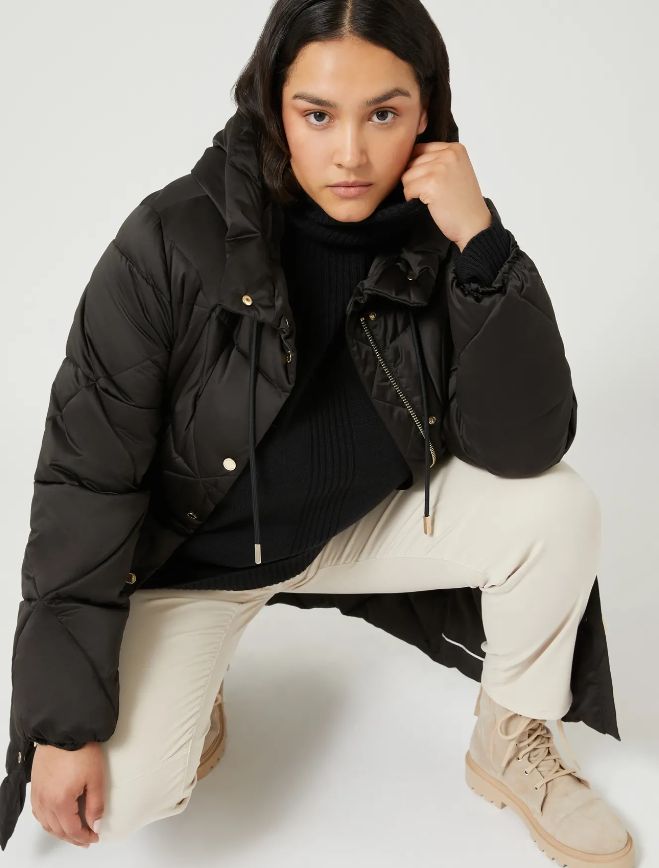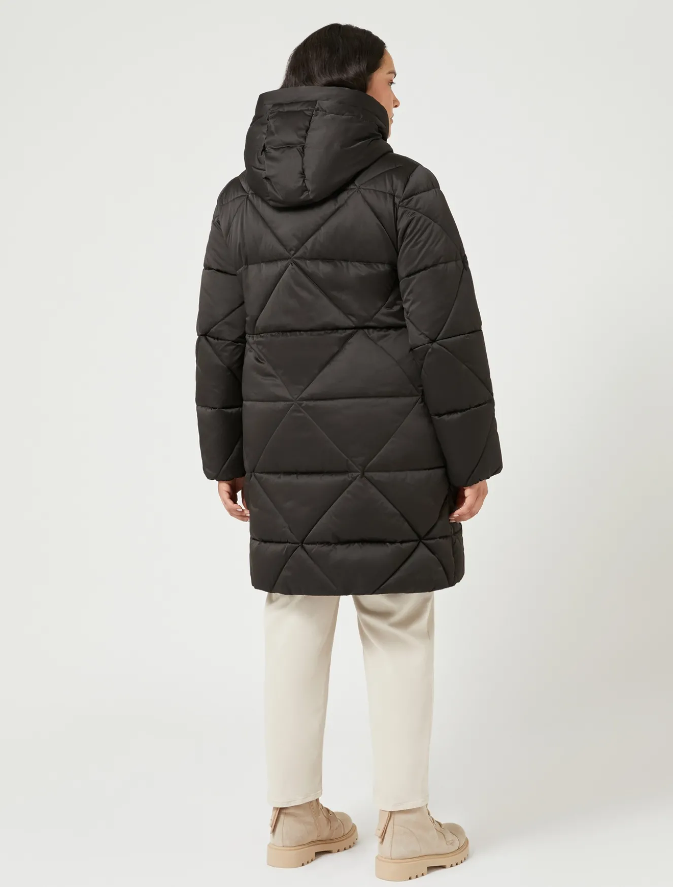 Wattierte lange Jacke mit Rautensteppung in wasserabweisendem Satin. In der Taille mit dem innenliegenden Tunnelzug regulierbar, ist sie die perfekte Wahl, um deine Looks der Saison zu vervollständigen.Das Kleidungsstück ist Teil der Kollektion Marina Sport.