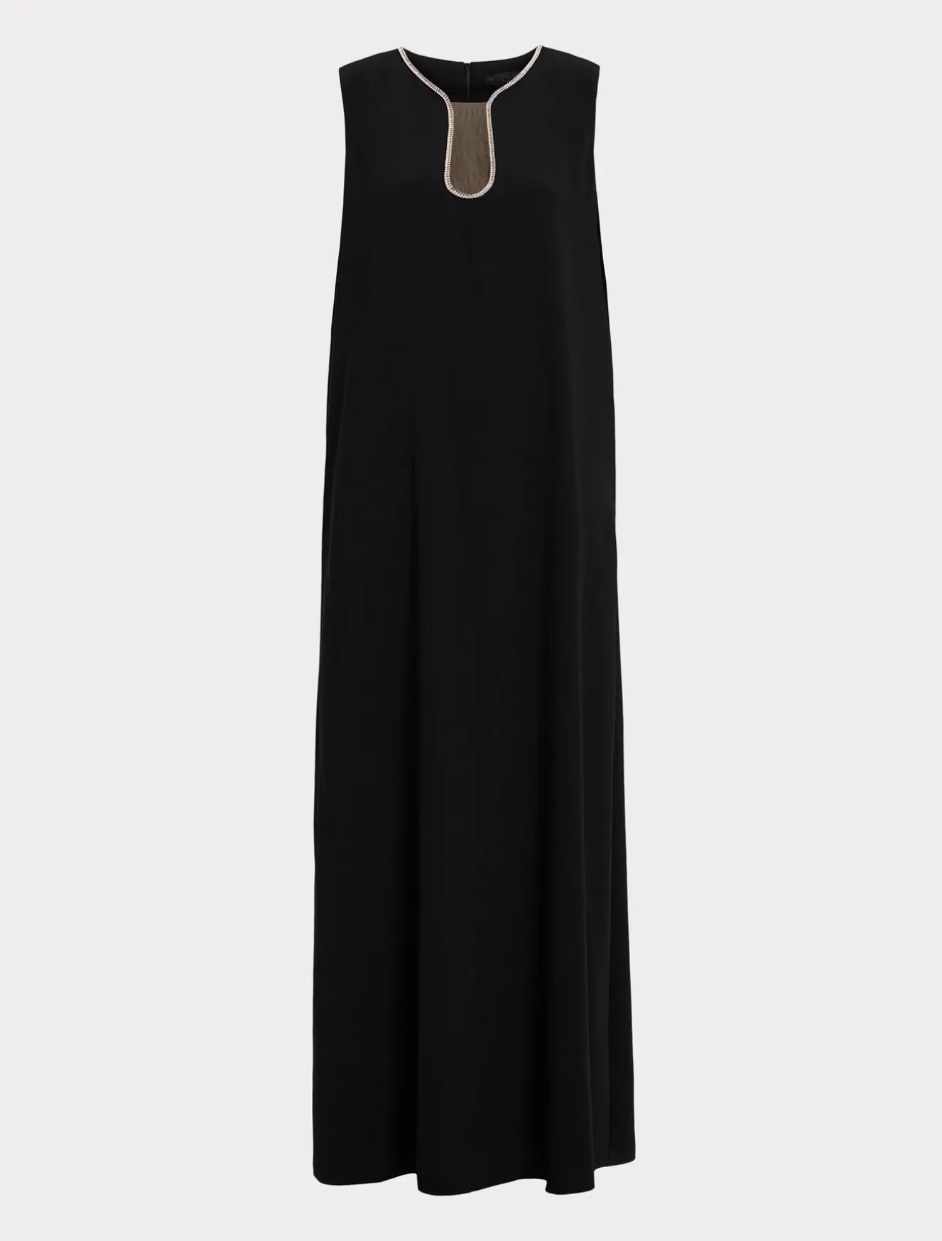 Langes Kleid aus bequemem Triacetat-Cady mit Strass-Schmuckkette am Ausschnitt. Der fließende, moderne und vielseitige Stoff lässt sich leicht pflegen und wirft keine Falten. Das Kleid wird mit langen Ärmeln geliefert, die von einer Schneiderei angebracht werden können.Das Modell ist Teil der Kollektion Elegante.– Komfortabler Triacetat-Cady– Kette mit Strass– Ausgestellter Schnitt– Konturierter Ausschnitt– Verdeckter Reißverschluss hinten– Gefüttert