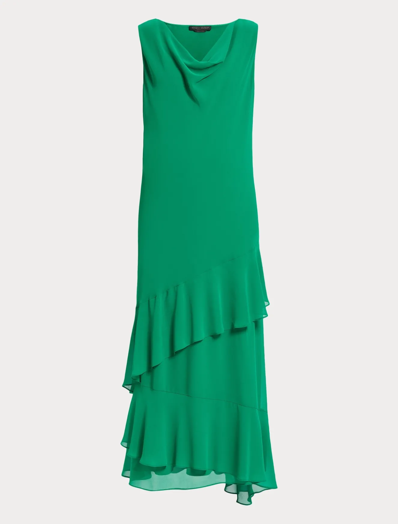 Das feminine und schwerelose Maxikleid aus Georgette besticht durch ein schräges Oberteil und einen drapierten Ausschnitt. Die Dreiviertelärmel lassen sich unschwer von einem Schneider anbringen.Das Kleidungsstück ist Teil der Kollektion Elegante.