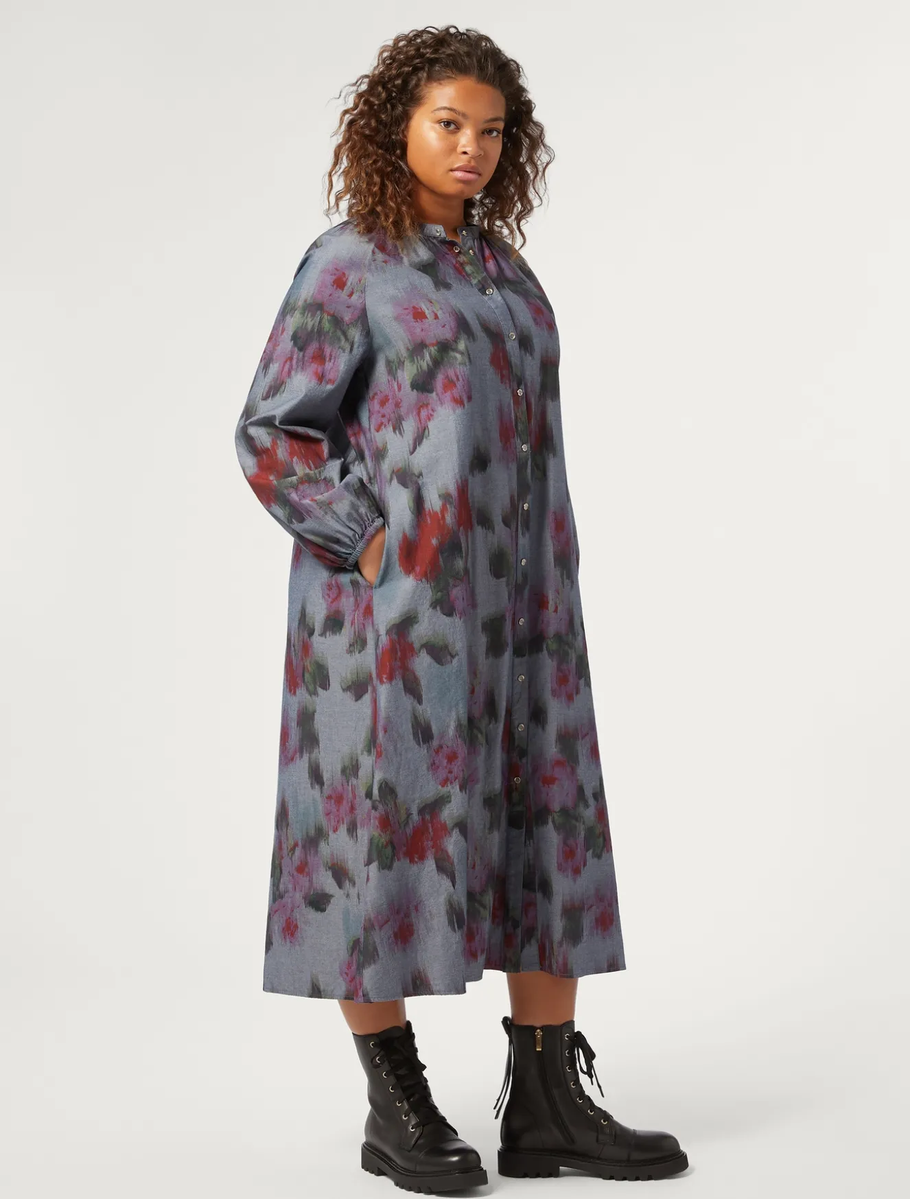 Das Hemdblusenkleid ist aus bedrucktem, stückgewaschenem Baumwoll-Chambray-Denim gefertigt und besitzt Rüschen am Ausschnitt. Einfach überziehen und fertig.Das Kleidungsstück ist Teil der Kollektion Marina Sport.