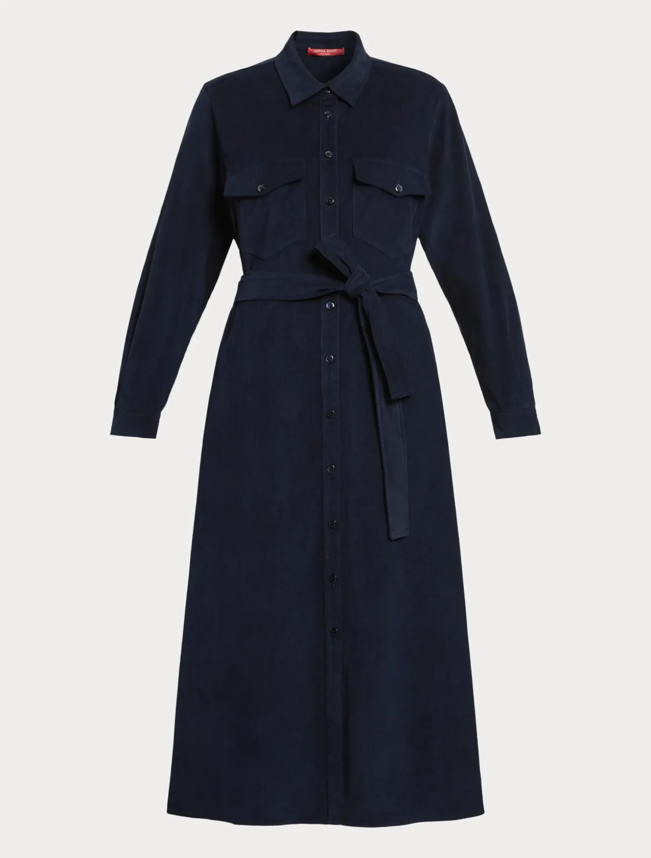 Das lange Hemdblusenkleid aus reinem Baumwoll-Cord mit Taschen vorne ist ein femininer Everyday-Style. Du kannst den Sitz mit dem passenden Gürtel in der Taille regulieren.Das Kleidungsstück ist Teil der Kollektion Marina Sport.