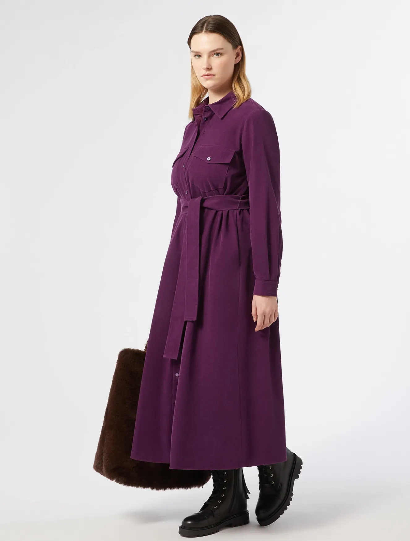 Das lange Hemdblusenkleid aus reinem Baumwoll-Cord mit Taschen vorne ist ein femininer Everyday-Style. Du kannst den Sitz mit dem passenden Gürtel in der Taille regulieren.Das Kleidungsstück ist Teil der Kollektion Marina Sport.