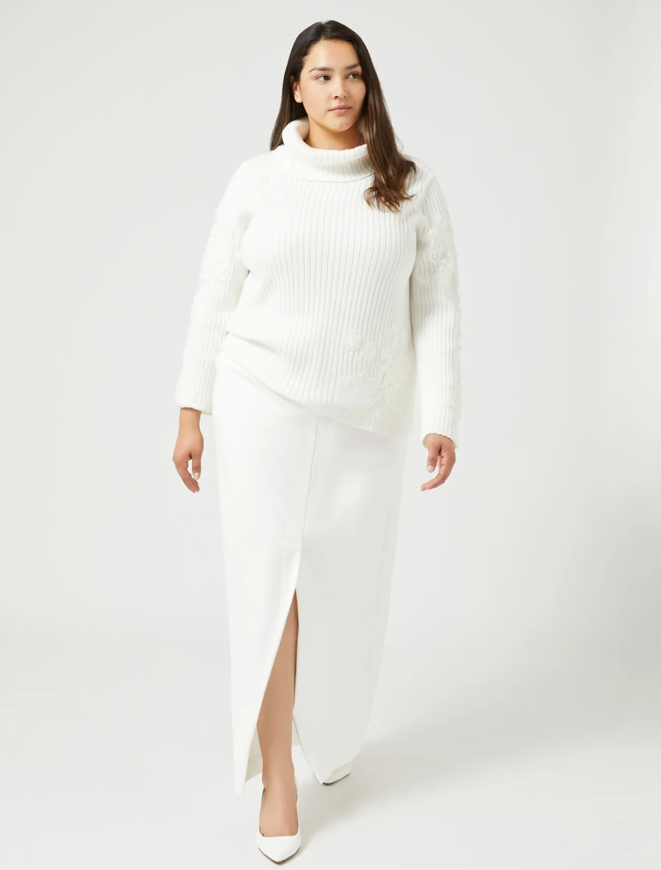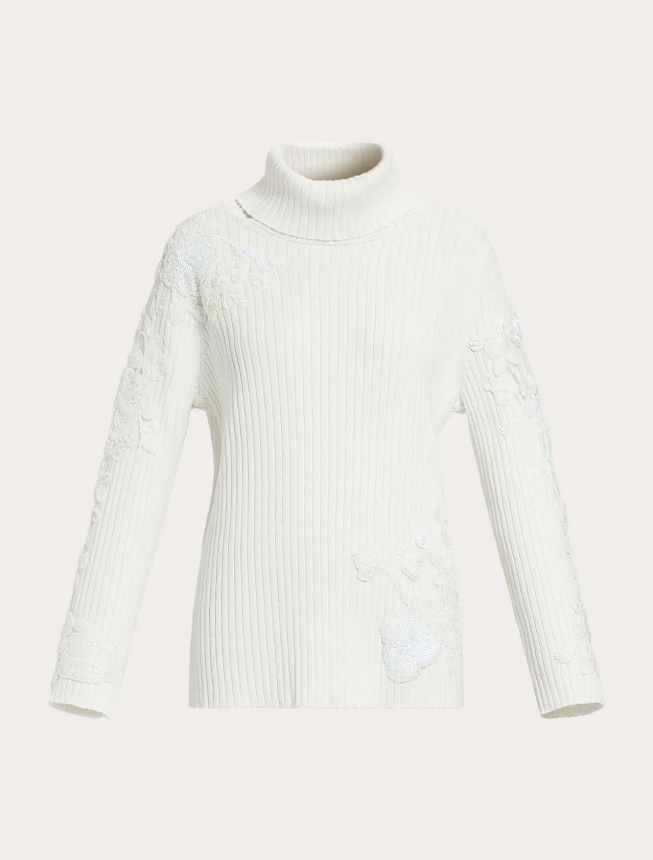 Mit Tüll-Applikationen bestickter Rippstrickpullover aus reiner Baumwolle. Perfekt für einen besonderen Anlass.Dieses Modell gehört zur Hauptkollektion von Marina Rinaldi.