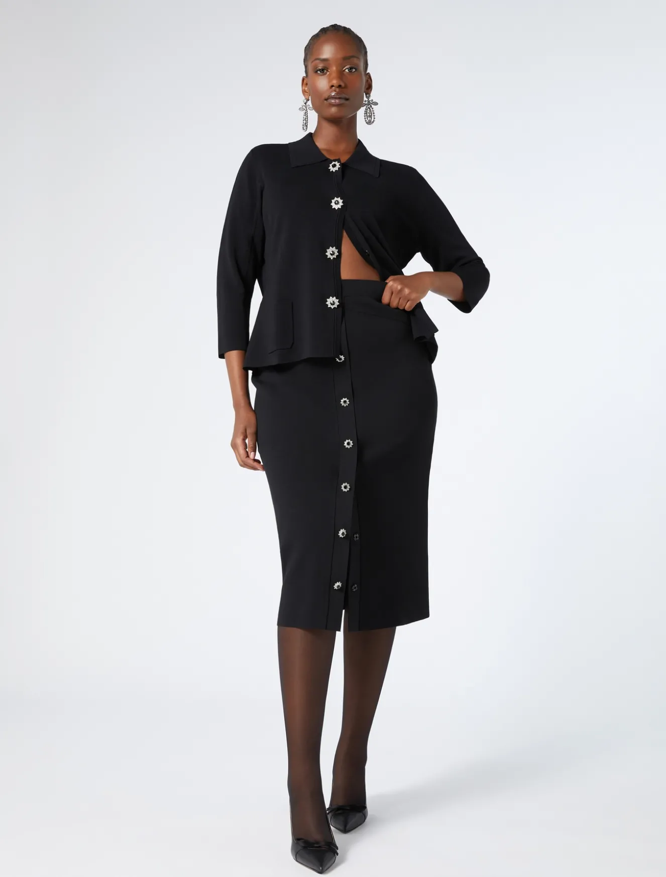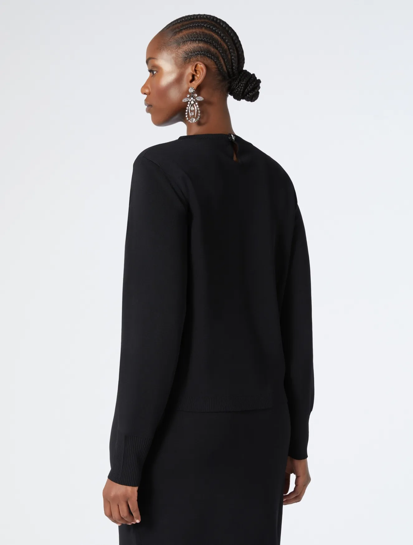 Vervollständigen Sie Ihren Look mit diese Top aus matter Comfort-Viskose mit Schmuckknopf auf der Rückseite. Vielseitiger Strickmode für Ihre Garderobe, auch in Kombination mit dem passenden Rock.